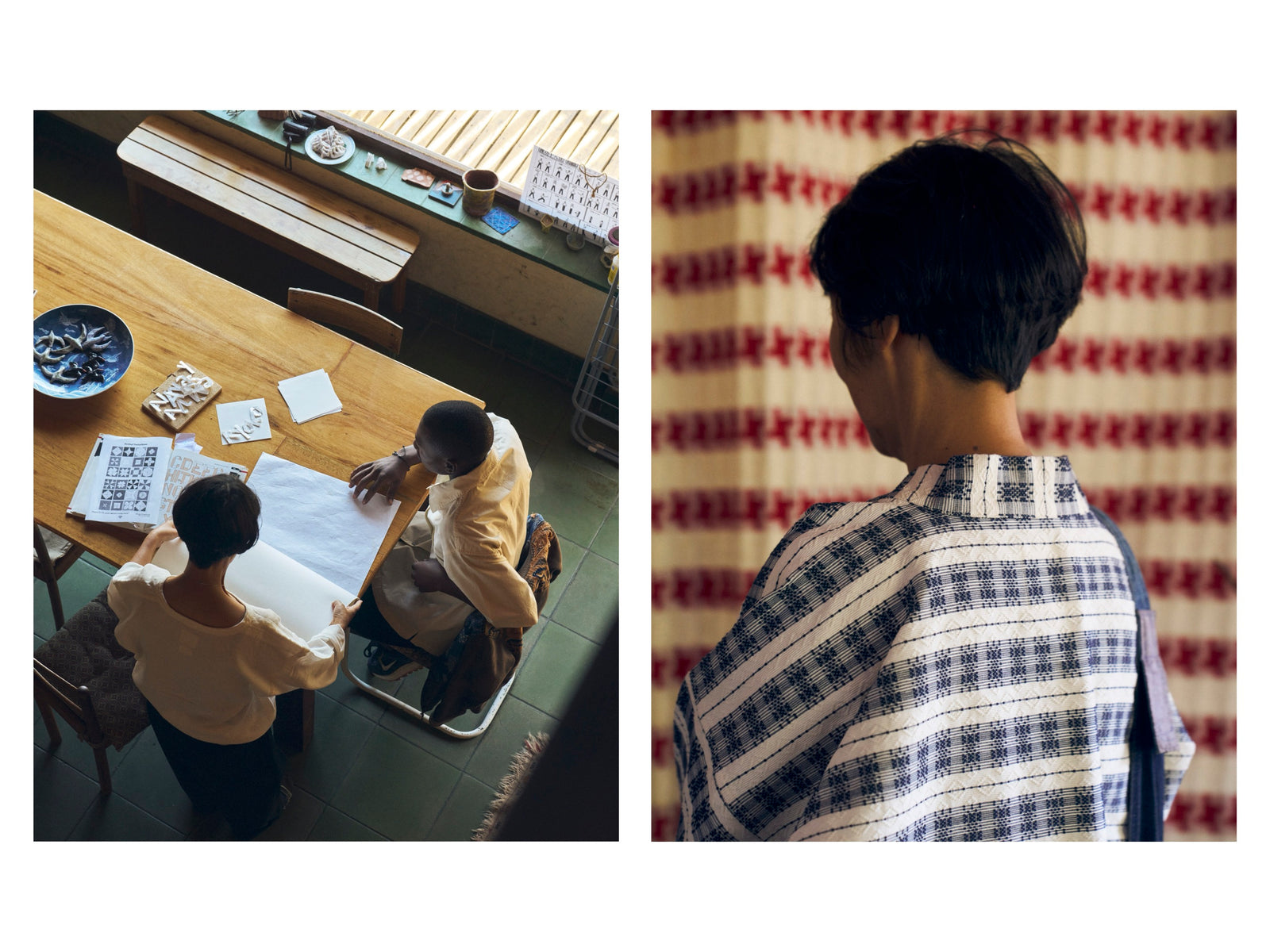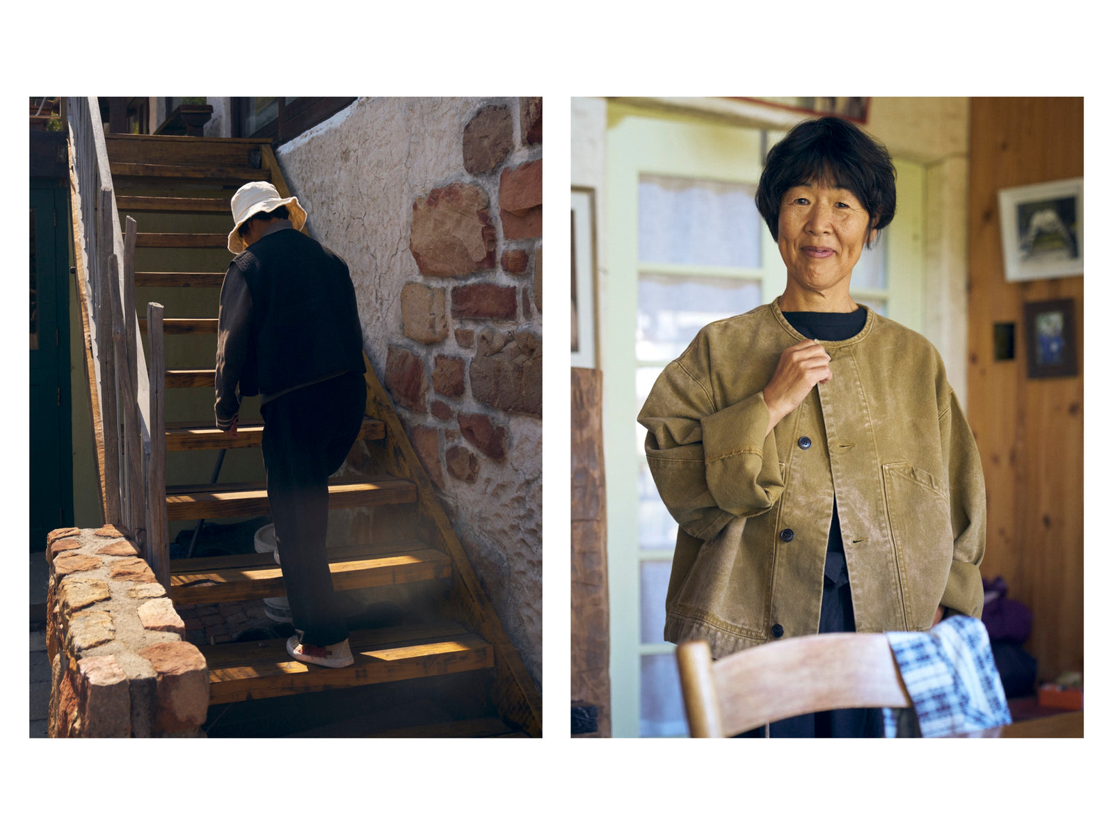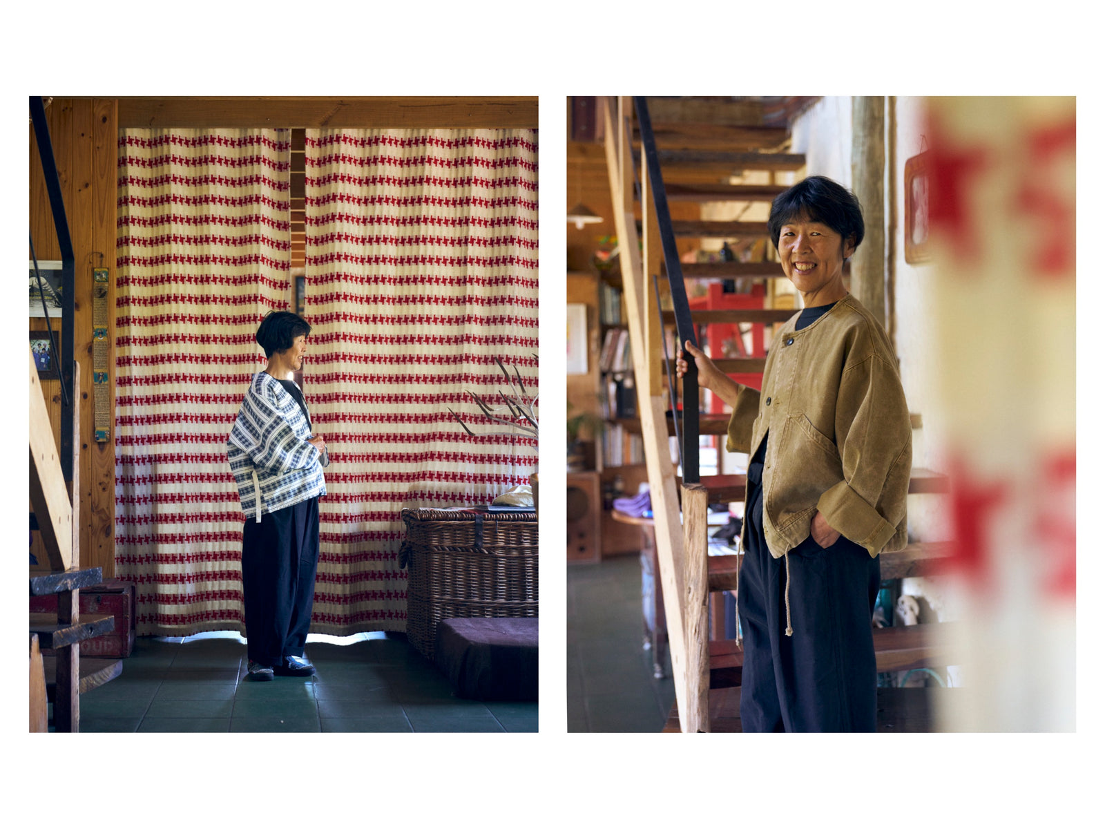 I love the haori-style jacket, made with beautifully woven fabric. It is comfortable and elegant. It is modern and ancient at the same time. It has something universal about it.