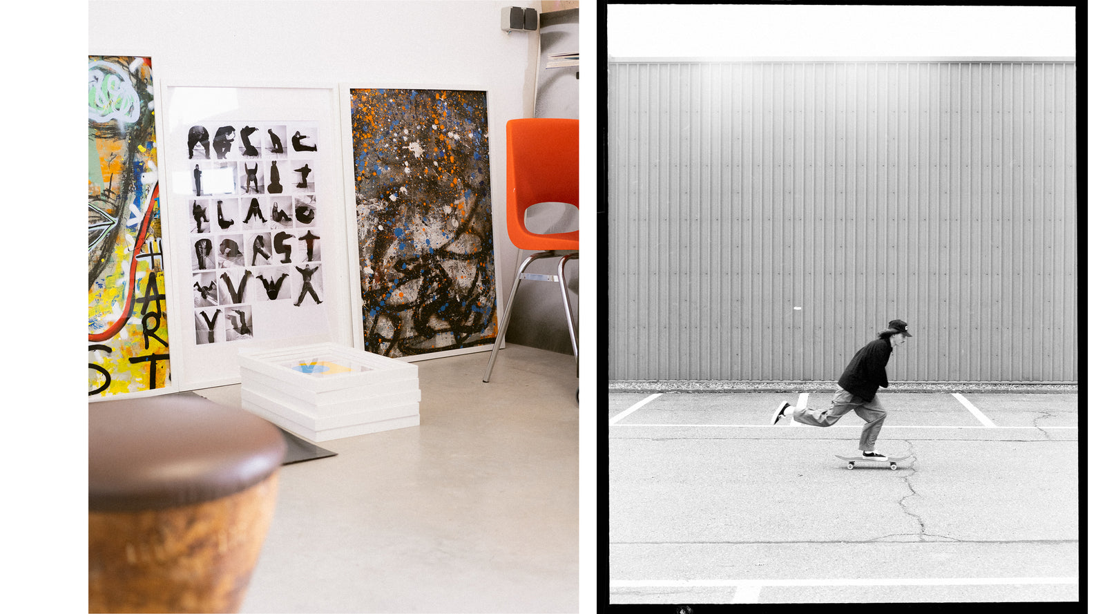 I believe skaters see the world differently. Their perception is heightened, noticing details others overlook. Road markings, cracks, chipped paint, layered walls, and small everyday details catch my eye, while many pass them by. I see opportunities where others see imperfections. In return, art shapes my perspective on locations to skate and lines to ride; I consider composition, color, and the overall image's significance to me. I know I’m not the easiest skater to work with as I have a clear view of how I want something to come out and I won’t settle for less. I even think about what I could wear during filming because I value the complete image I put out in the world.