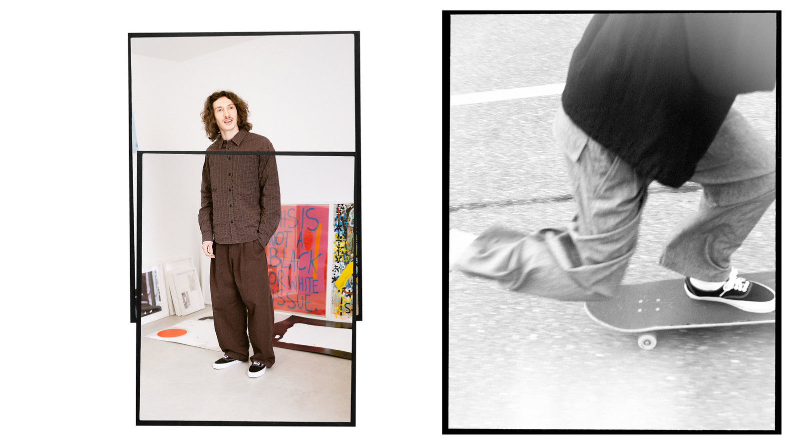I see myself as an introverted young man full of ideas, trying to express my feelings and observations of the world through various images, without restricting myself to a specific medium. I also love skating and try to spend as much time as possible rolling around. Additionally, I am a student pursuing a bachelor's degree in art, exploring different mediums, and exploring myself along the way. What does an average day look like for you? I enjoy waking up early, having a hearty breakfast, and starting a productive morning. Lunch then feels like a reset, something I anticipate because it helps me prepare for the rest of the day. Whenever I can, I like to skate on my skateboard, but lately, especially during the week, my attention is mainly on schoolwork and all the projects involved. So, give us some insights. Where should we go for lunch? My mum prepares the best lunch I could ask for. I don't need to visit fancy restaurants or places where everything seems overpriced. Honestly, the food at home often beats restaurant meals, which can sometimes be disappointing. Both my mom and dad are very supportive, giving me a lot of freedom and trust, which means a lot to me. As a skateboarder, I imagine you travel quite a bit. Do you have any upcoming travel plans? I don't have any trips scheduled currently. My main focus is on school at the moment. Some friends invited me to go skate in Tenerife, but I'm happy with my current situation and prefer to concentrate fully on finishing my projects. I already had a lot of opportunities in the past and I ‘m certain they will keep coming in the future.
