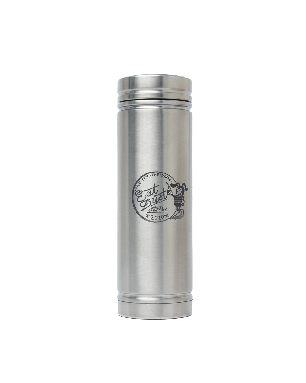 Made exclusively for Eat Dust by Mizu. 100% food-grade stainless steel. 640 ml , insulated, double-wall construction with vacuum-sealed cap and durable rope handle. 100% BPA-free and recyclable. graphic on side. Available in 3 colours : Black , Army Green , Stainless Steel