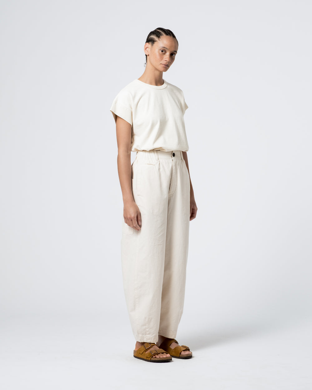 It's the return of our popular Muscle T. What's that? Well, it's a boxy t-shirt with shorter capped sleeves. An easy piece that fits well with shorts, denim, skirts or basically whatever you can think of. Cover your bases.