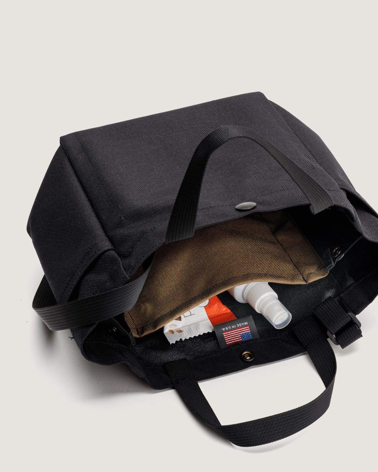 - Open top with snap closure