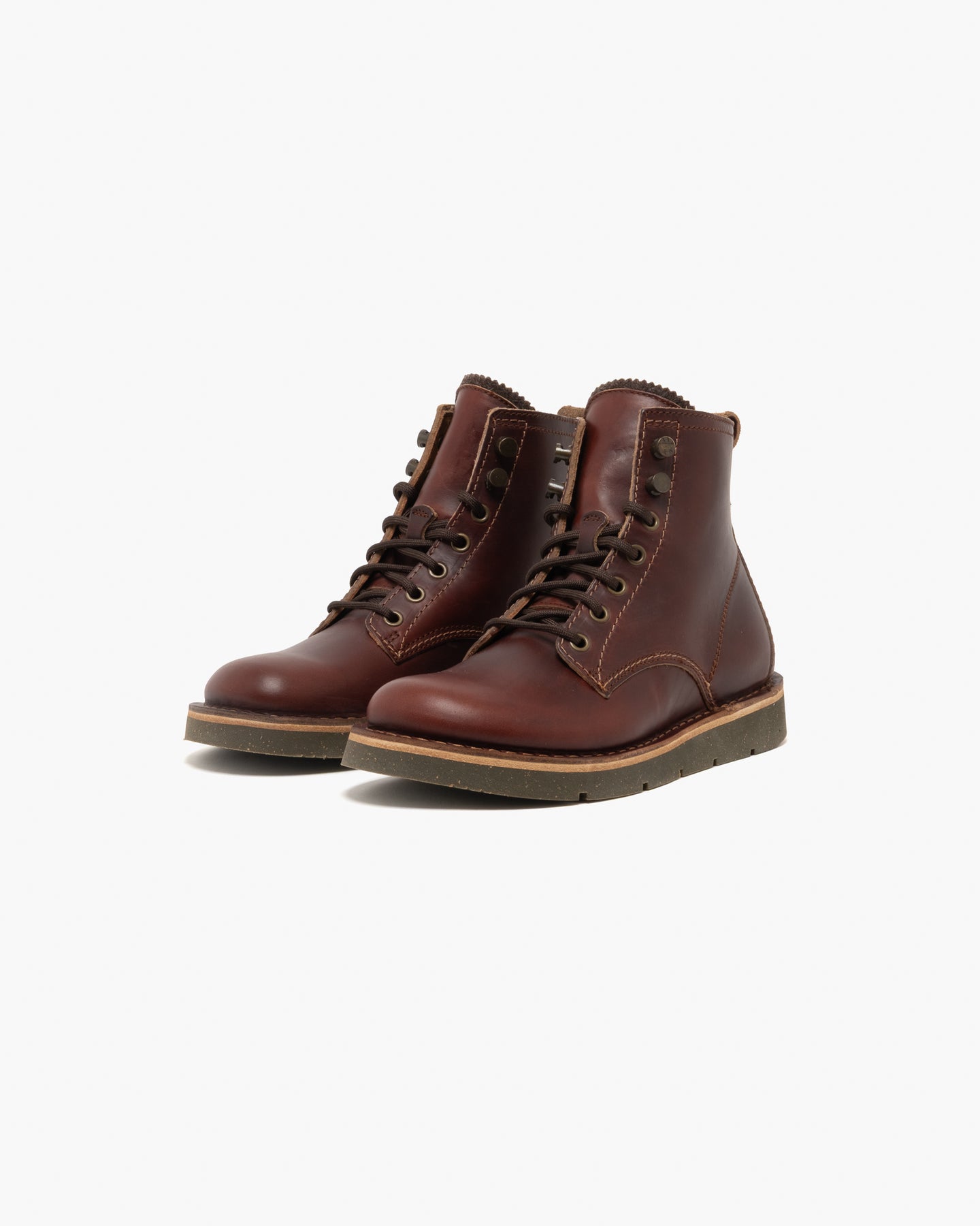 The BIRKENSTOCK Birmingham Lace stands out as a rustic lace-up boot. The robust, grippy rubber sole provides stability and can be repaired when worn down. Thanks to the comfortable and lightweight Deep Blue Footbed, this shoe offers pleasant wearability and is ideal for everyday use—especially on long, active days. Perfect for travel, long walks, and city trips. This classic is now available in a premium version with a leather insole and distinctive stitching. The insole, a type of midsole beneath the footbed, is not visible. The upper is made from high-quality Horween cowhide leather, originally developed for professional sports.