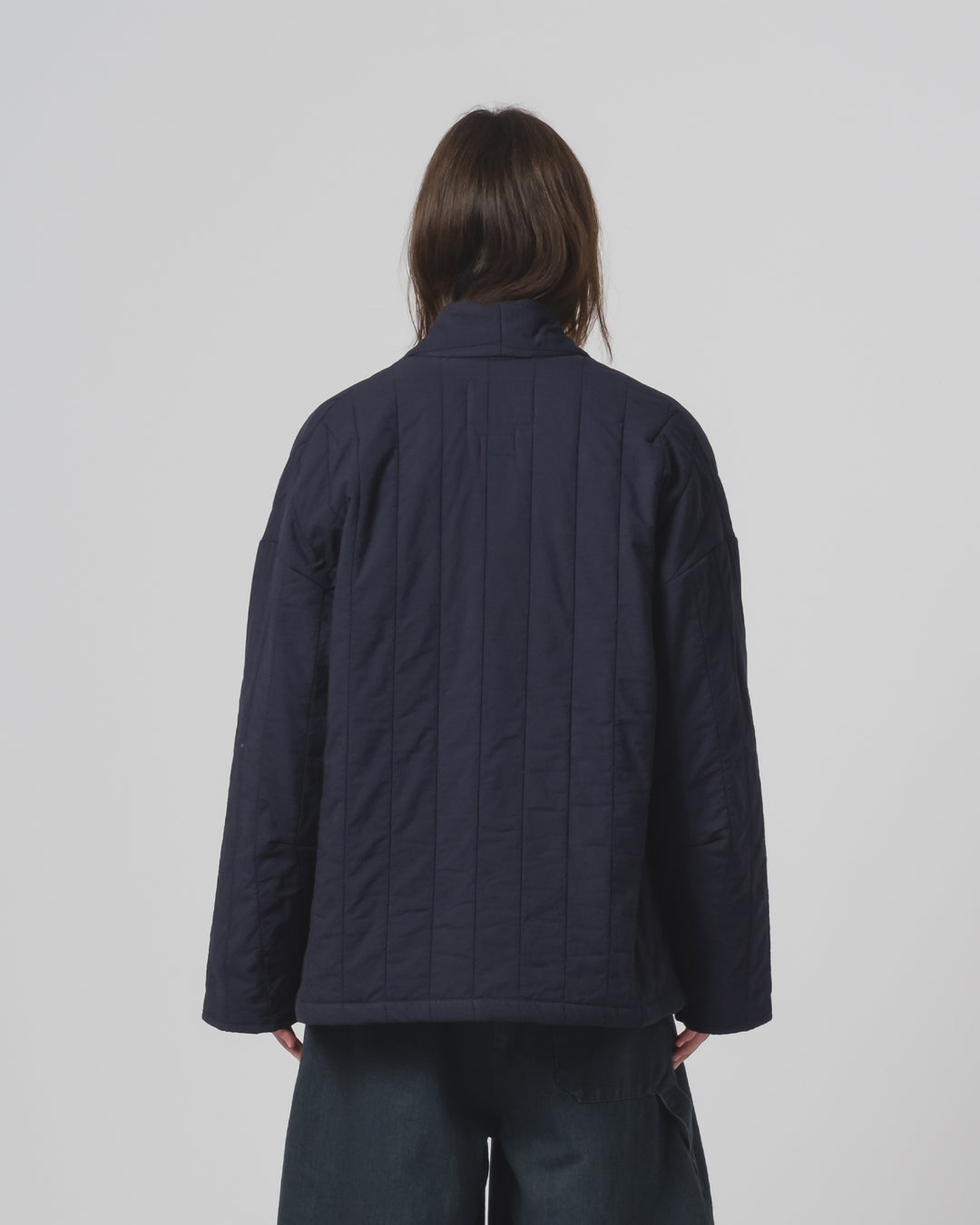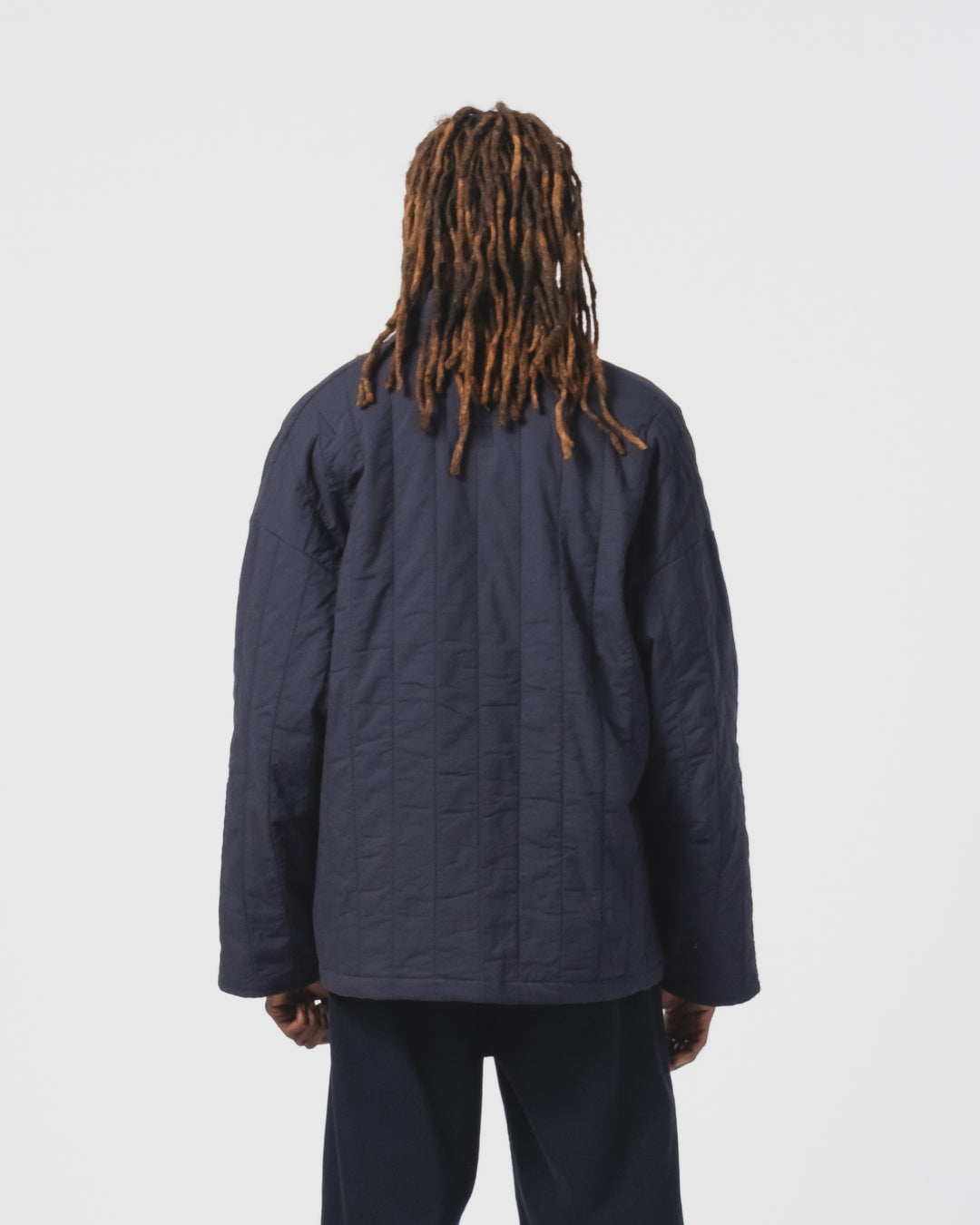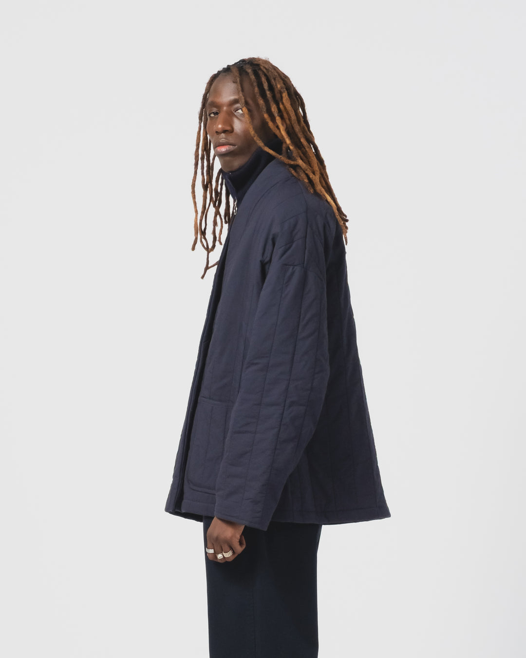 Take a Kimono, make it longer and make into a jacket. This is our Edo jacket. Made from a padded cotton for extra warmth, making it a great choice as an easy extra layer you can throw over your shoulders when needed.