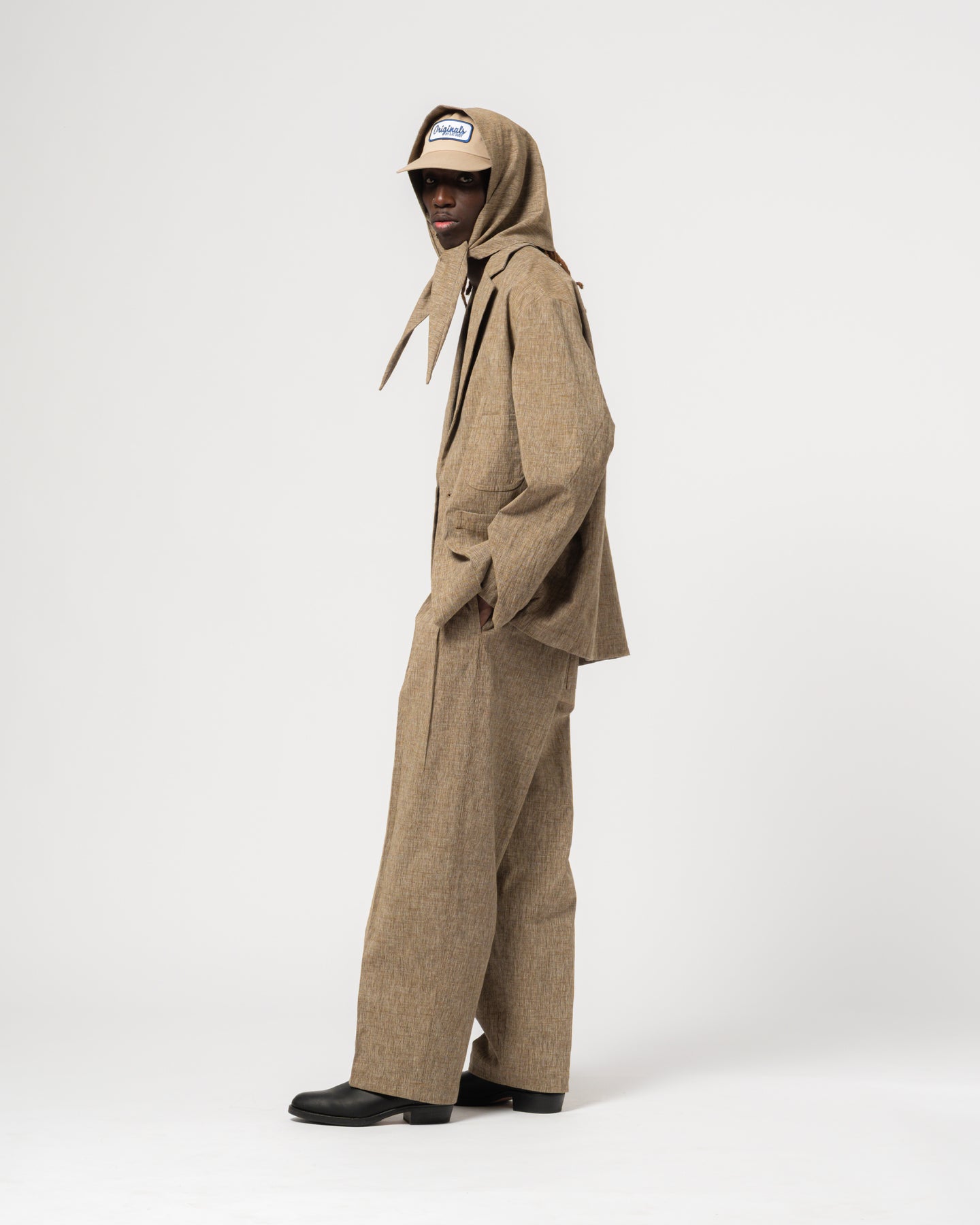 It's our double breasted blazer! We made sure to give this one our own spin, so it fits kind of oversized and boxy, plus feels a lot more casual than a regular blazer would. Made from a Wool blend for the colder days. Finished with big front pockets and a small chest pocket.