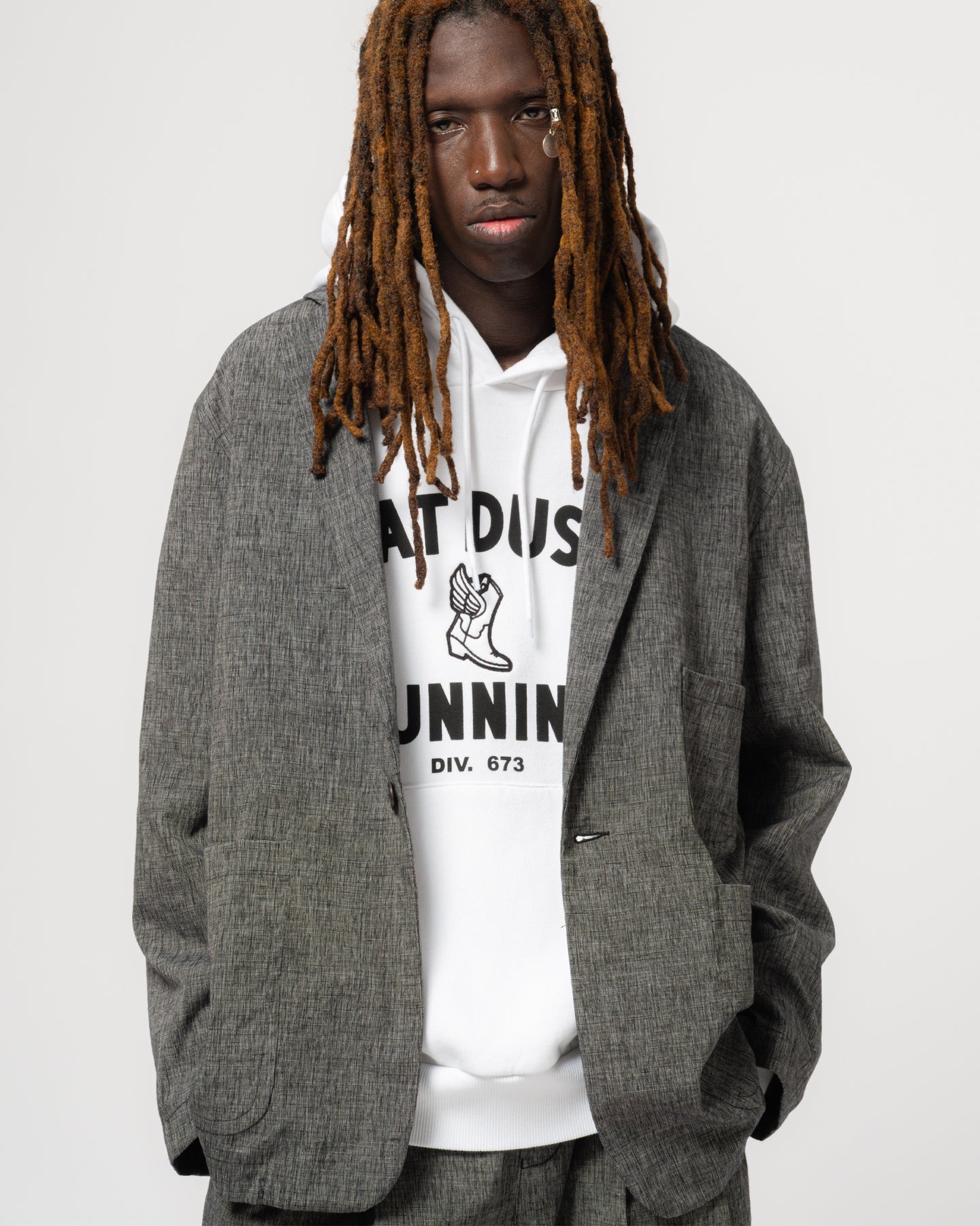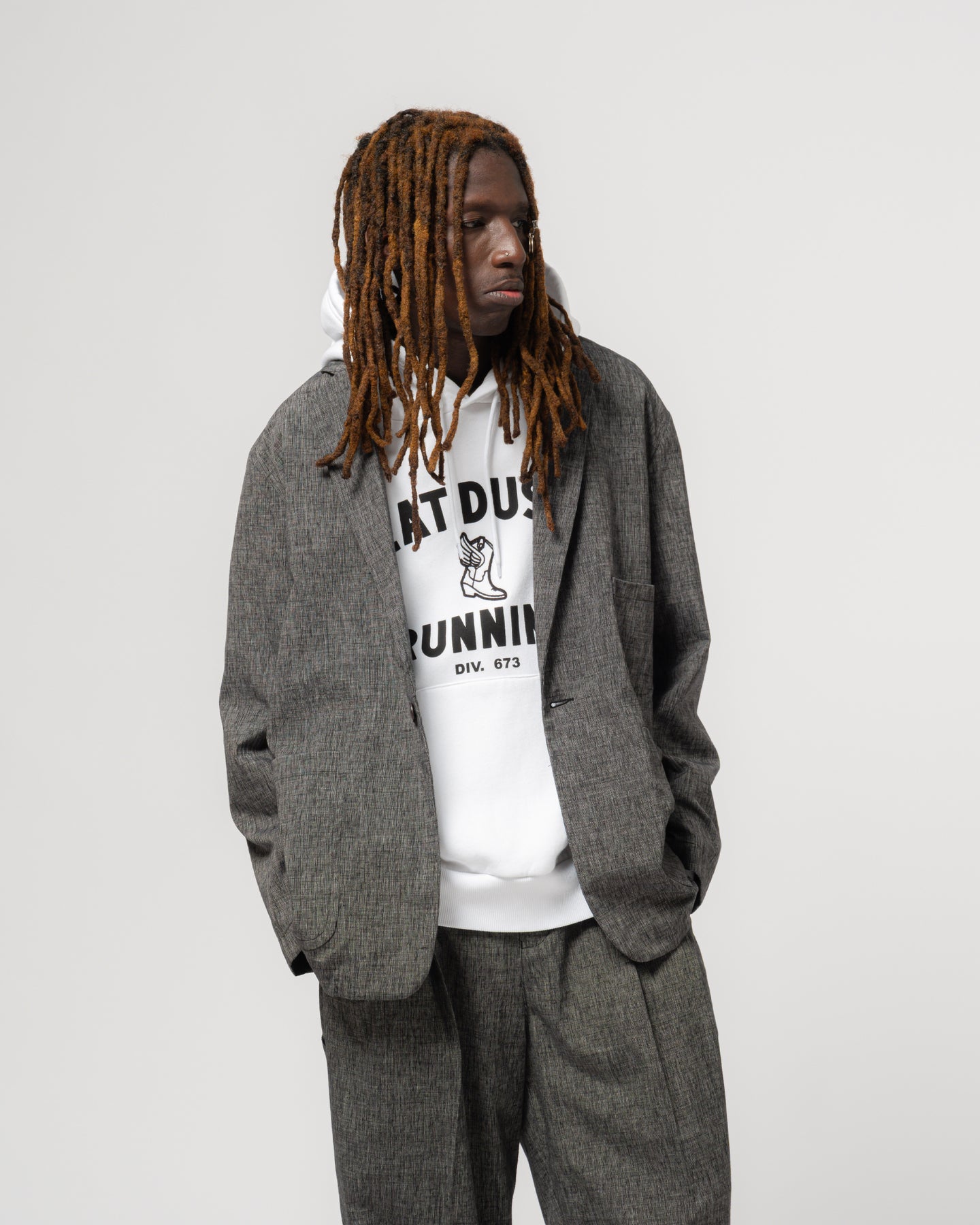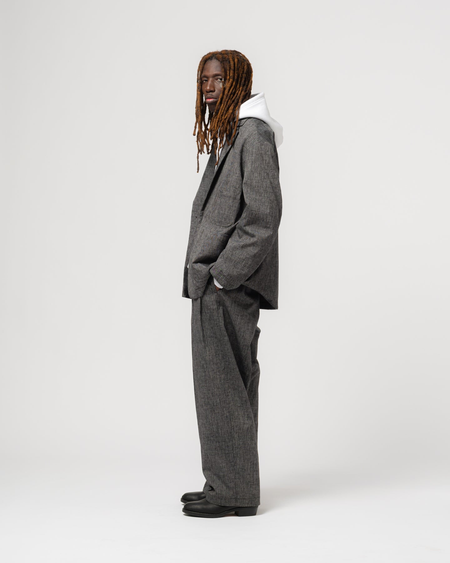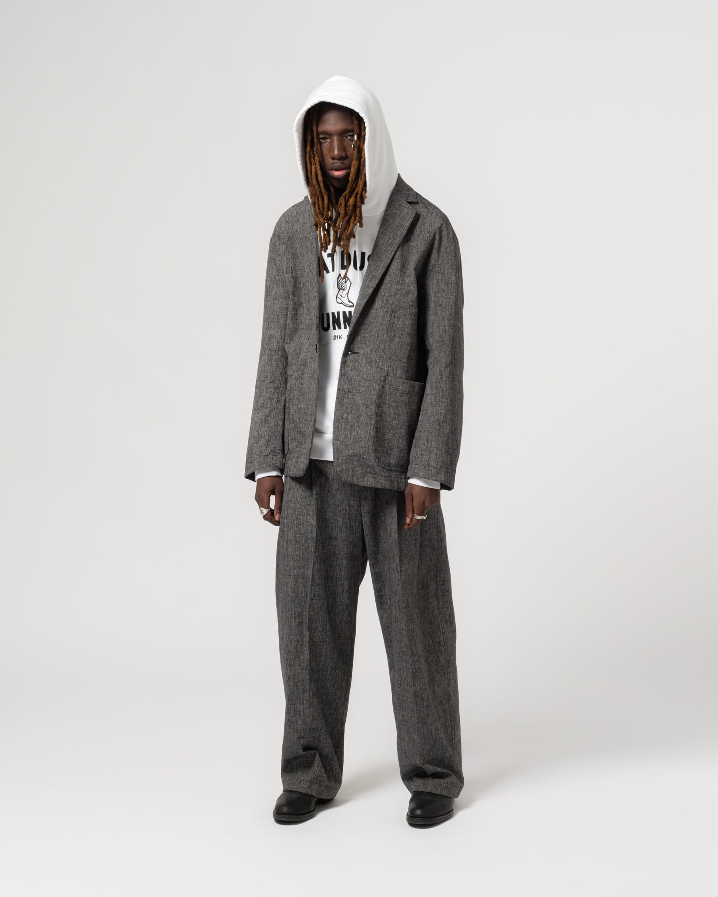 It's our double breasted blazer! We made sure to give this one our own spin, so it fits kind of oversized and boxy, plus feels a lot more casual than a regular blazer would. Made from a Wool blend for the colder days. Finished with big front pockets and a small chest pocket.