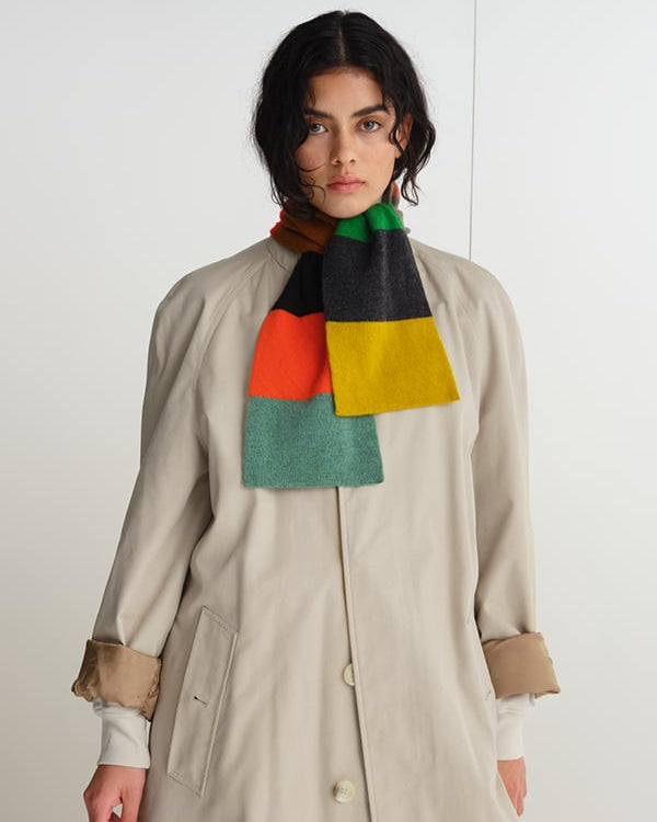 Wear tucked into a jacket, shirt, or coat for a pop of colour. Small enough to have in your bag for chilly moments. A double layer of fine soft lambswool.