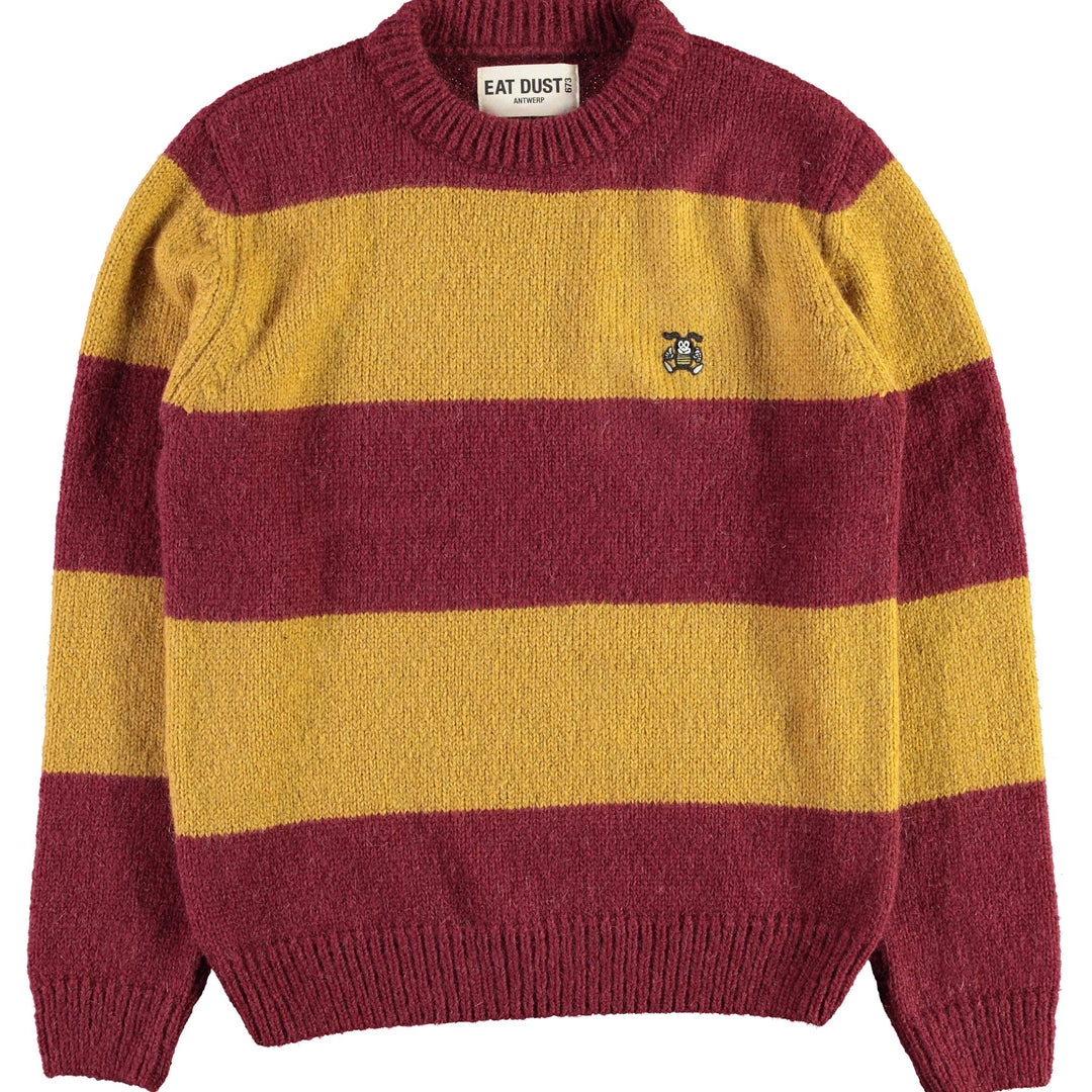 Crew Neck Sweater Stripe Mohair Bordeaux/Yellow
