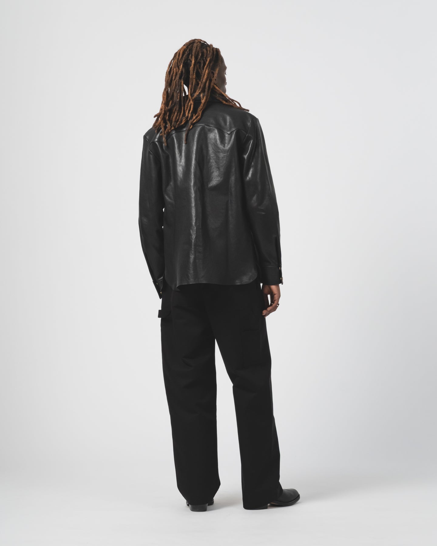 An Americana-inspired overshirt with Western and yoke details, in a relaxed, nearly straight shape. Finished with subtle slits on the sides and snap buttons. All in a special leather version.