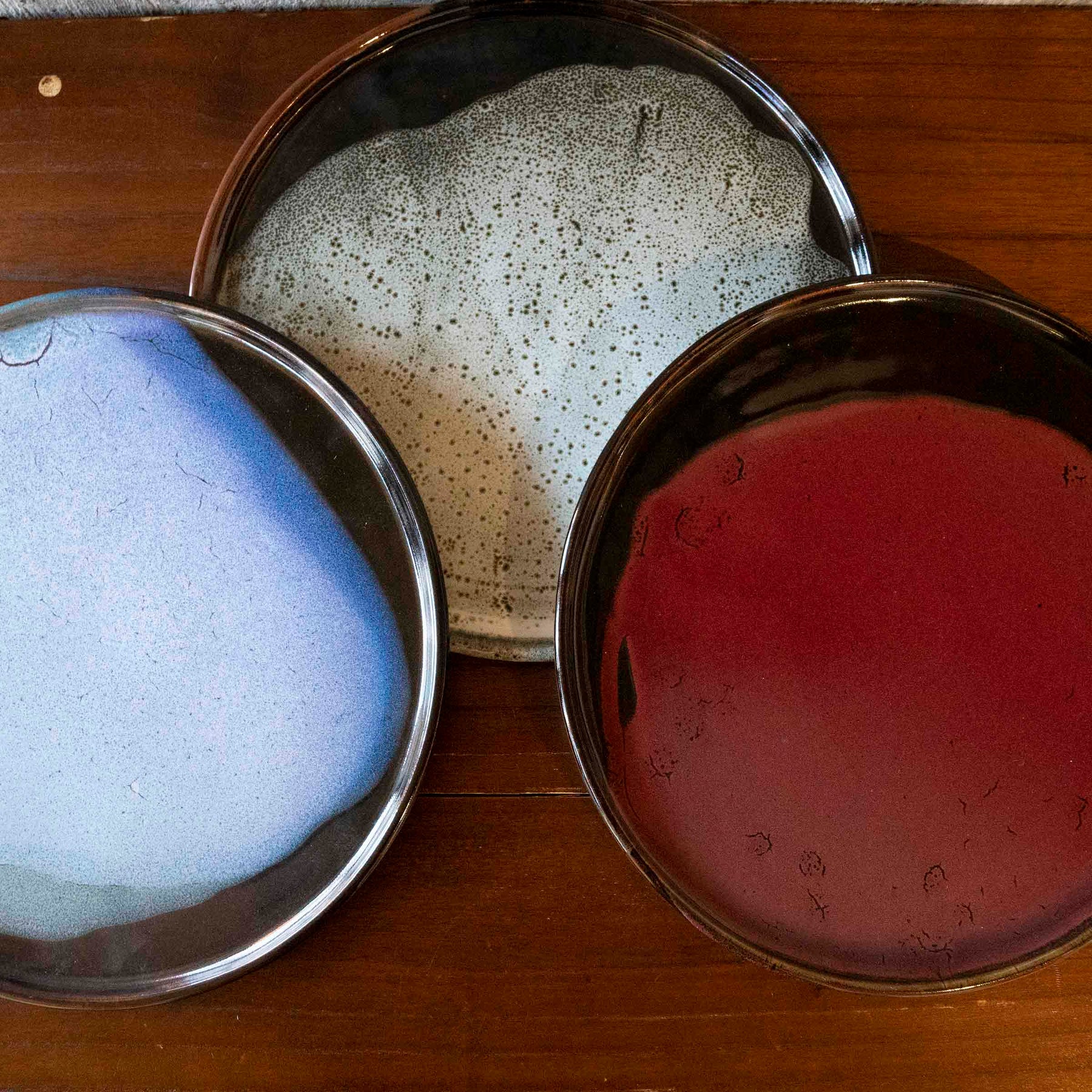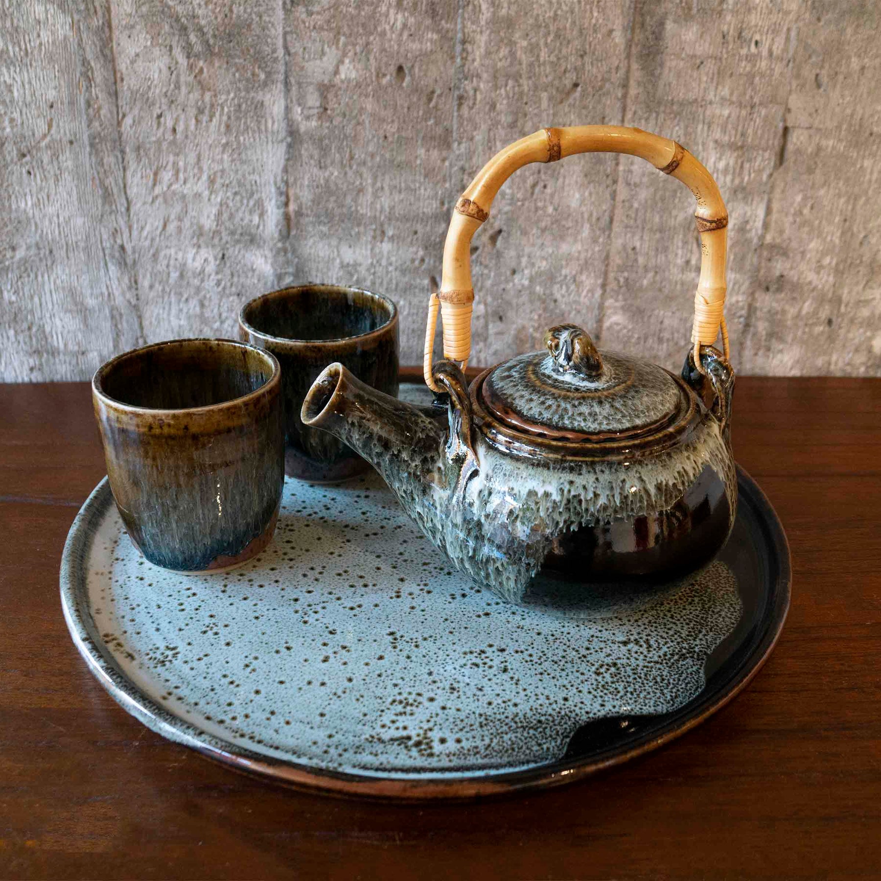 - Tenmoku glazing with a splash of lavender, fired in a gas kiln