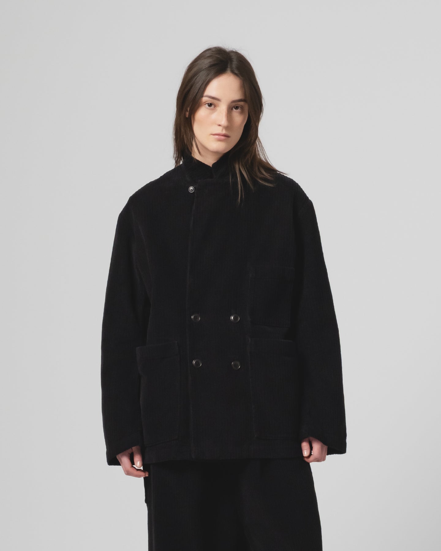 Introducing our new take on the classic double-breasted blazer, reworked with an easygoing attitude. The Maxi Blazer features a relaxed, oversized fit with soft shoulders for a more casual, unstructured look. Crafted from our seasonal Dream Cord cotton, it features a closable collar, button front closure, and oversized front pockets. Elegant yet not too serious.