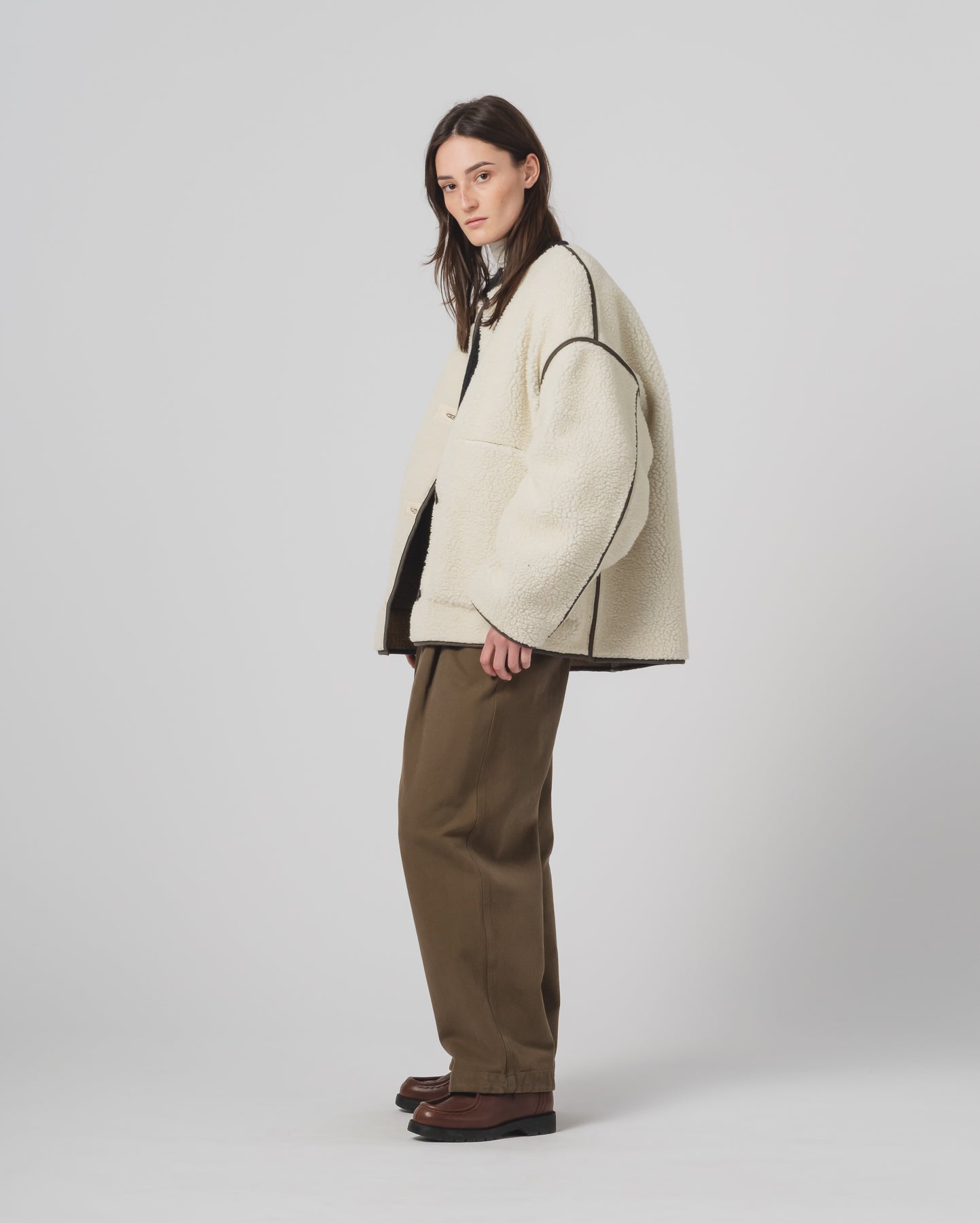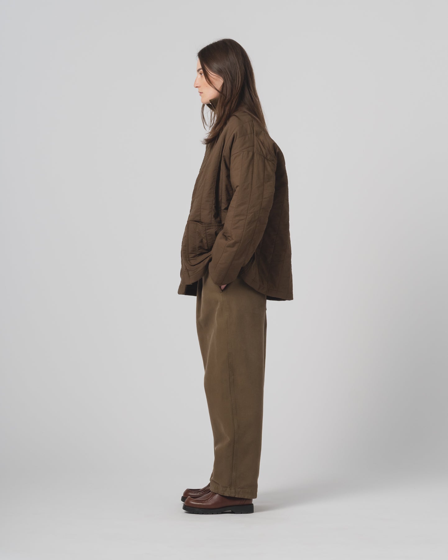 The British Worker is the absolute best seller among our women's pants even with our male customers. It combines a contemporary street style with a rugged workwear-inspired edge. High on the waist, pleated legs, with a singe flap pocket on the back. Legs are loose and rounded, tapering towards the ankles.