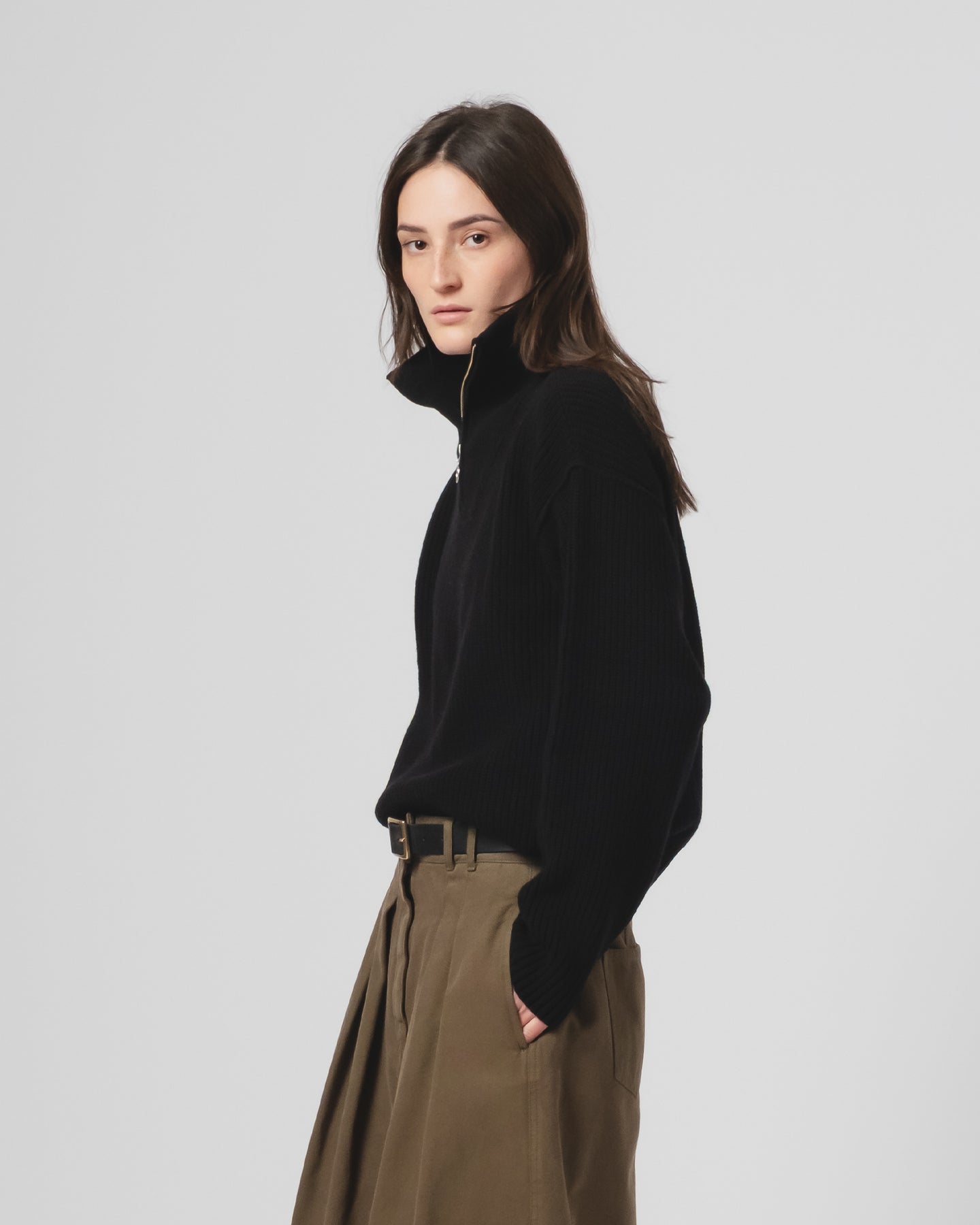 Clearly inspired by vintage military wear, this Fly Deck Sweater is warm and solid, but feels soft due to the premium Italian merino wool that was used. Finished with a half zip funnel collar and dropped shoulders.