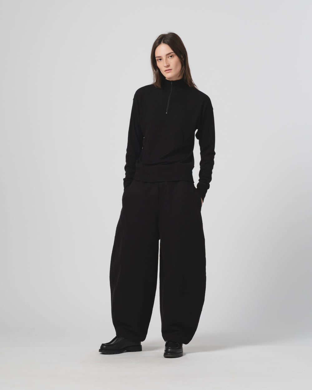 G.o.D Zipper Pull Over Light Wool Black