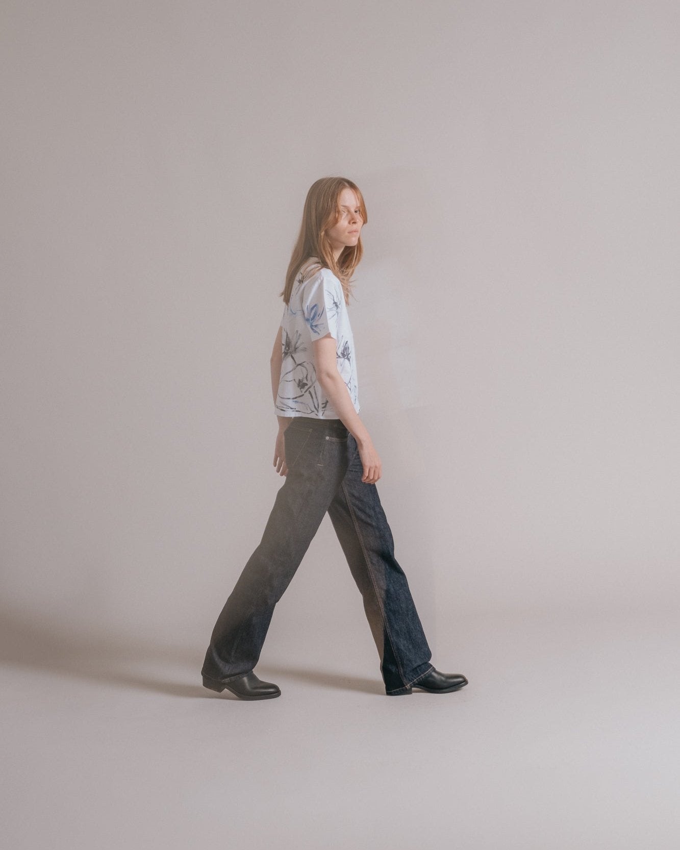 Florescence is a limited edition capsule collection by visual artist Katie Tomlinson. Each piece tells a story of transformation, crafted from upcycled deadstock denim and a rare, never-before-produced white denim. In a cathartic release of creativity, Katie hand-paints every garment, using the delicate beauty of nature’s cycles. Blooming, growing, swaying, and falling, to symbolize moments of transcendence in life. With every brushstroke, she captures the fleeting yet powerful shifts we experience, offering a wearable reflection of the natural world's grace and movement. This exclusive collection is a celebration of change, crafted for those who embrace life's endless evolution.