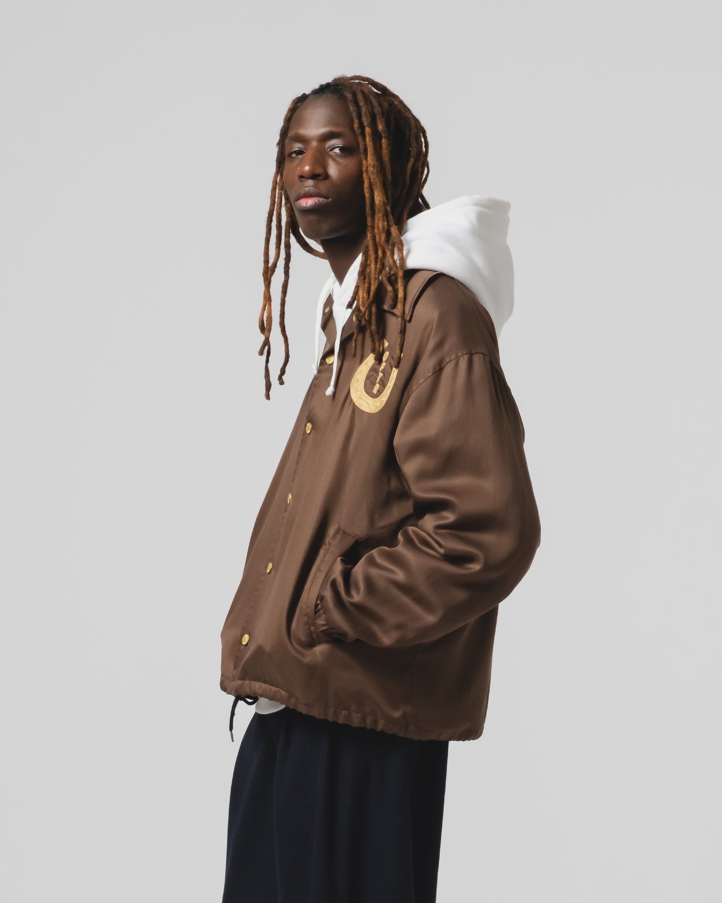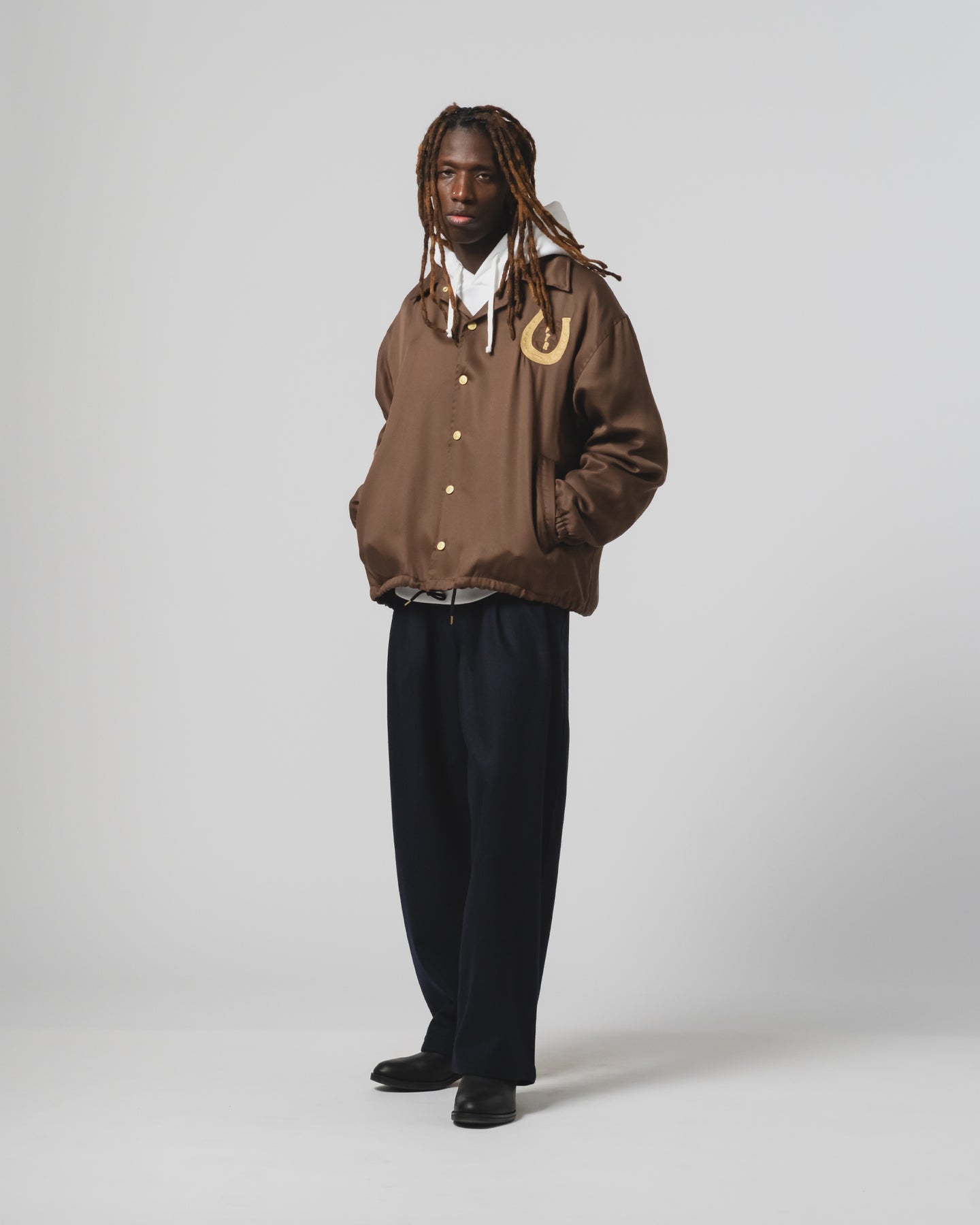 This lightweight version of our Dago Jacket is a modern, souvenir-style take on a coach jacket. Made from tencel, we added a seasonal 'Western Sportswear' chain-stitched embroidery on the back and the front.