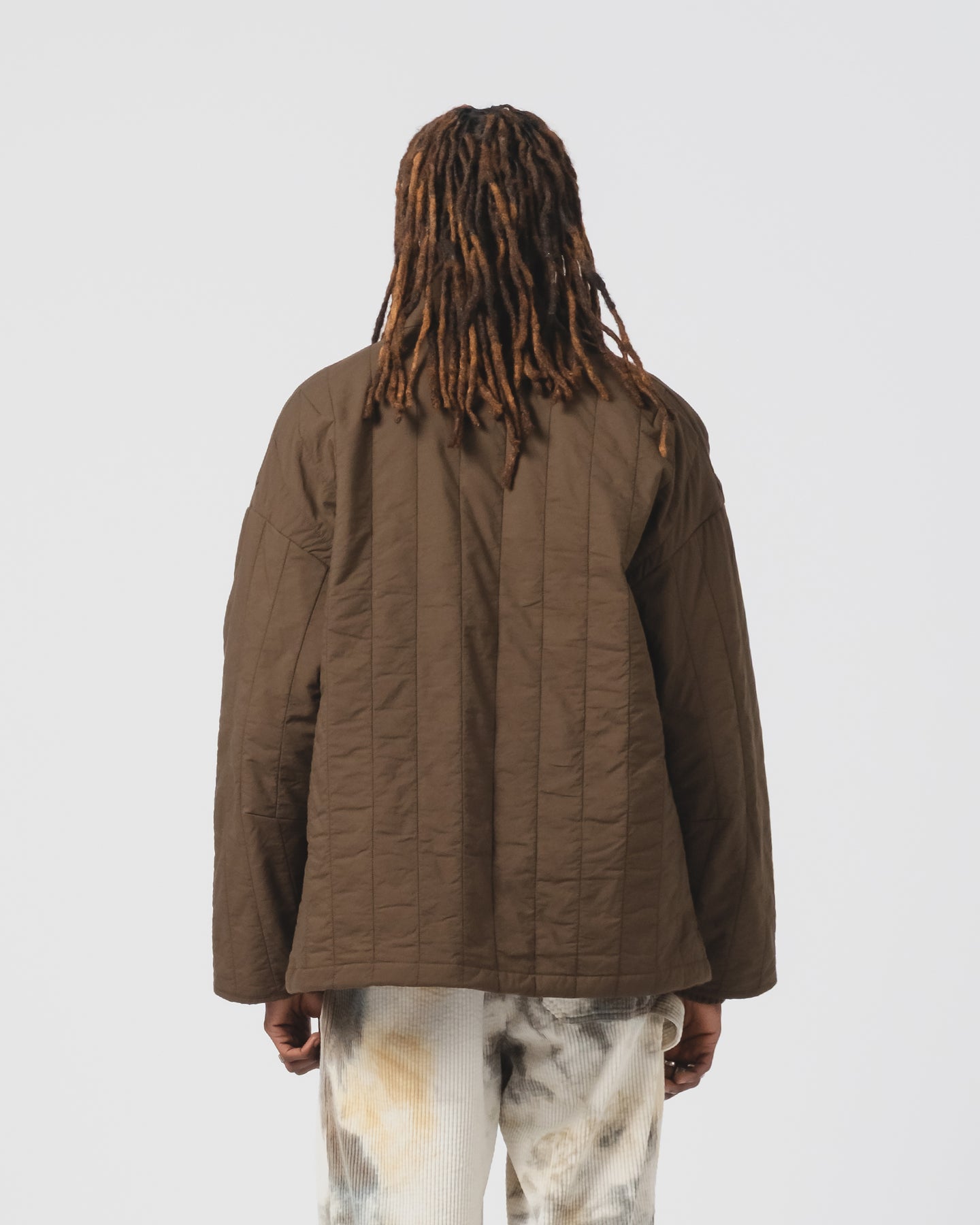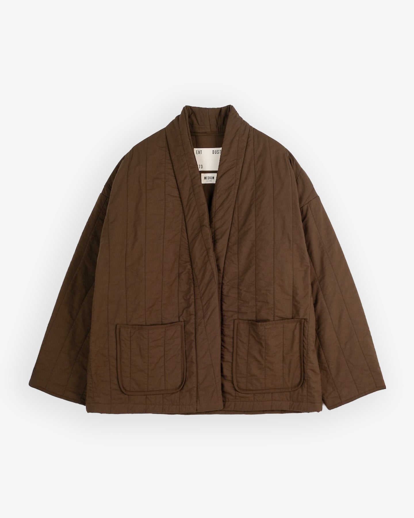 Take a Kimono, make it longer and make into a jacket. This is our Edo jacket. Made from a padded cotton for extra warmth, making it a great choice as an easy extra layer you can throw over your shoulders when needed.