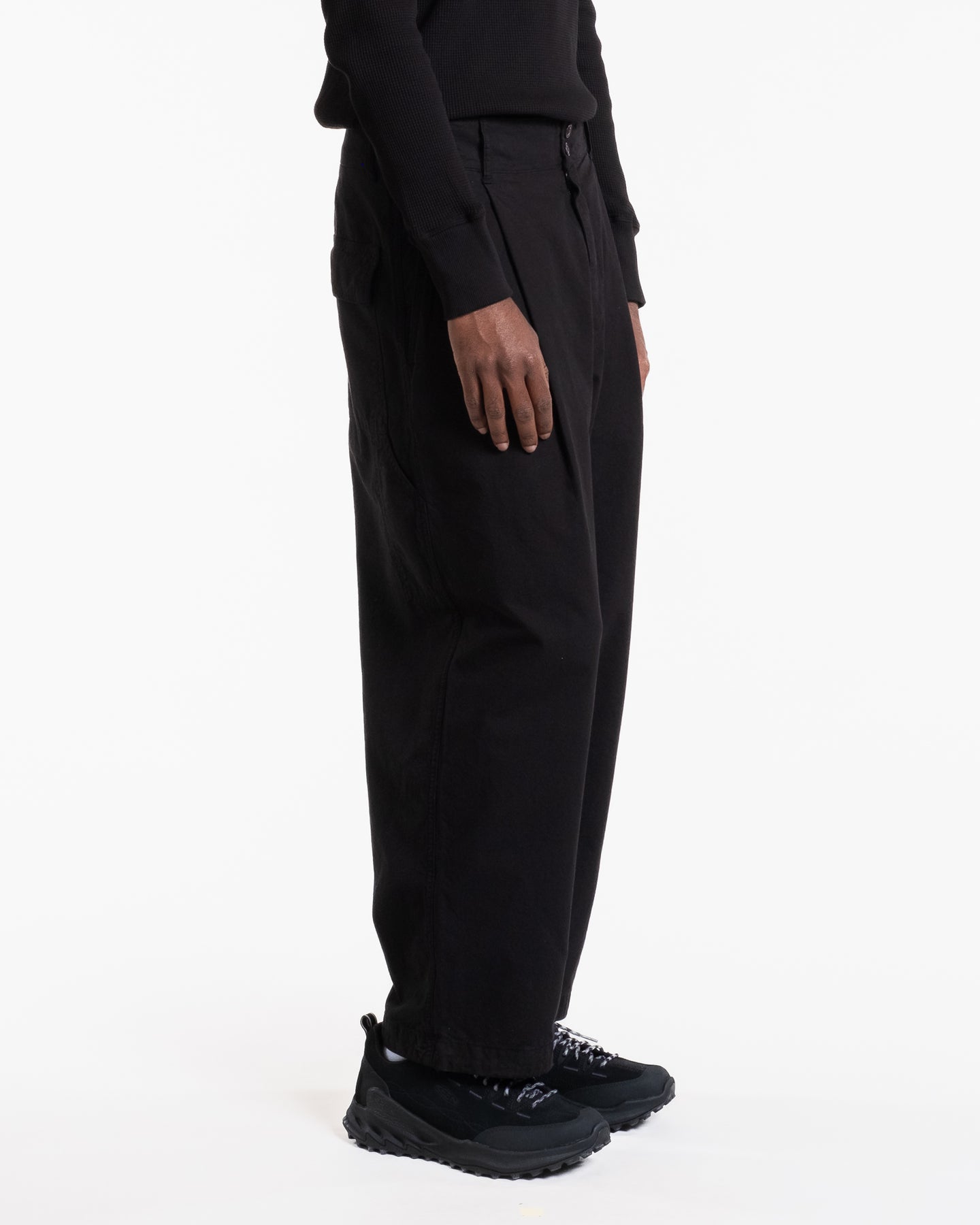 The British Worker is the absolute best seller among our women's pants even with our male customers, therefor we made it a Unisex style as of last years' Summer season. It combines a contemporary street style with a rugged workwear-inspired edge. High on the waist, pleated legs, with a singe flap pocket on the back. Legs are loose and rounded, tapering towards the ankles.