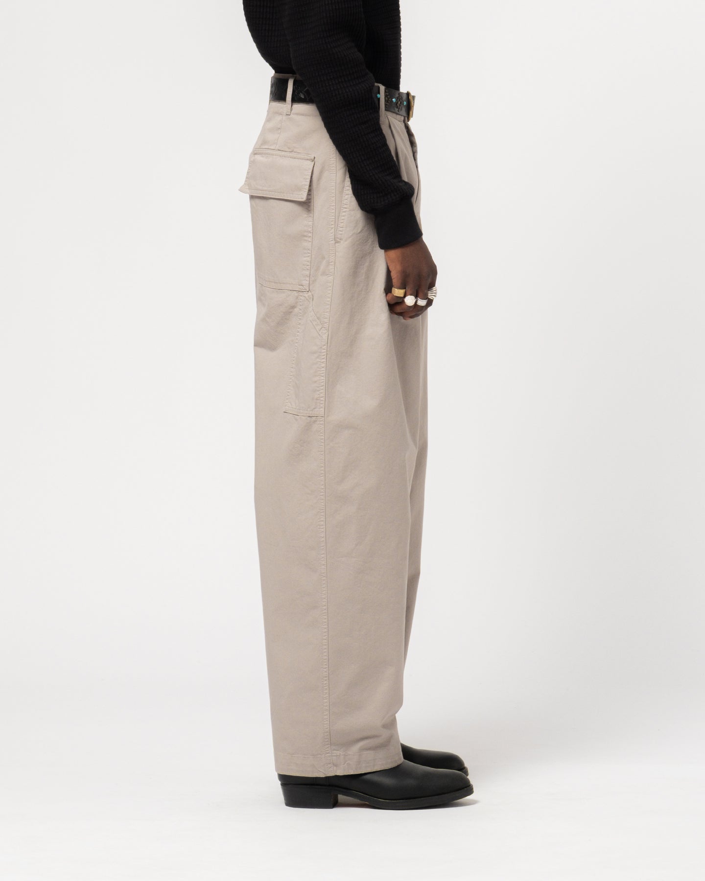 Introduced last Summer season our Ambassador Pants became an instant bestseller. This extra wide pleated carpenter style pants fits super loose with it's straight leg it stays wide all the way down. A voluminous unisex silhouette.