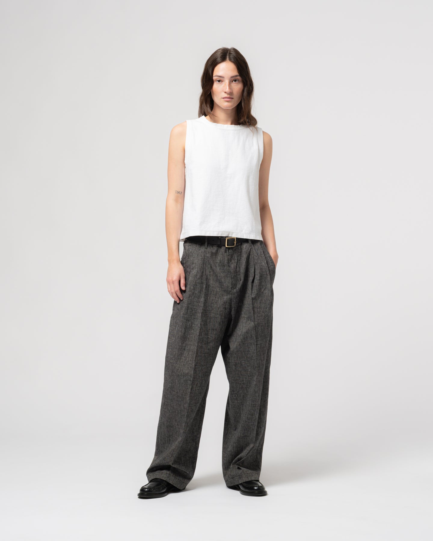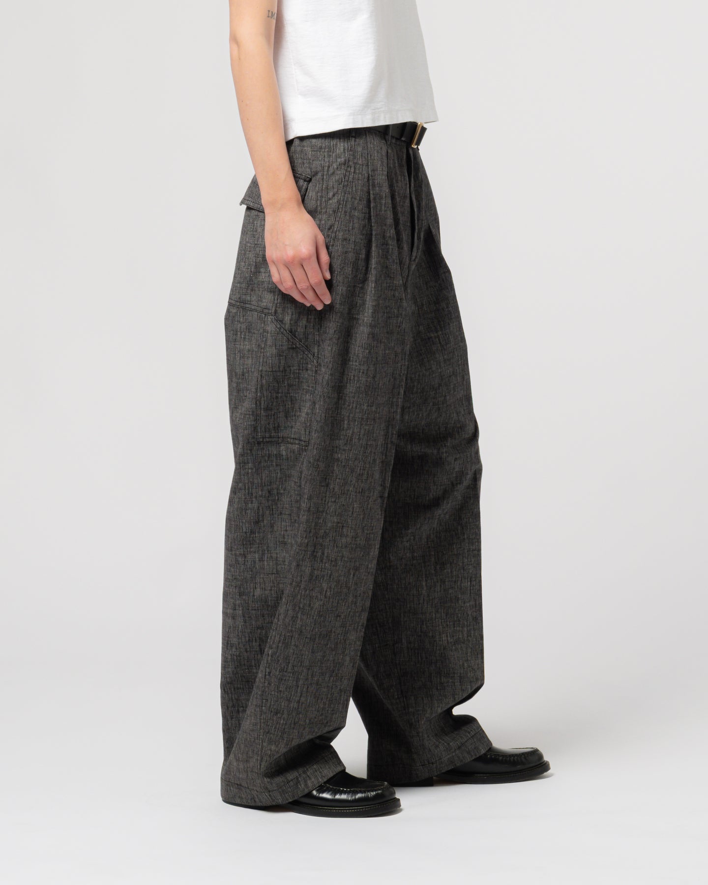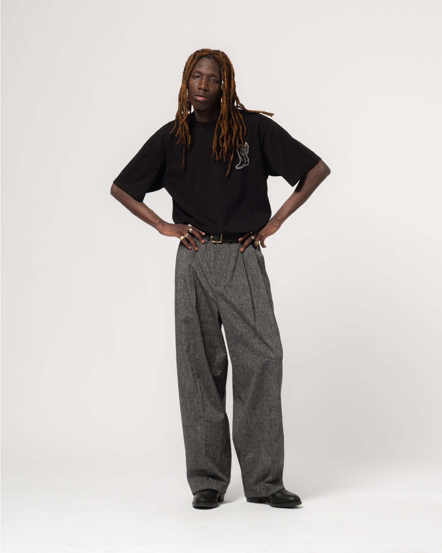 Introduced last Summer season our Ambassador Pants became an instant bestseller. This extra wide pleated carpenter style pants fits super loose with it's straight leg it stays wide all the way down. A voluminous unisex silhouette.
