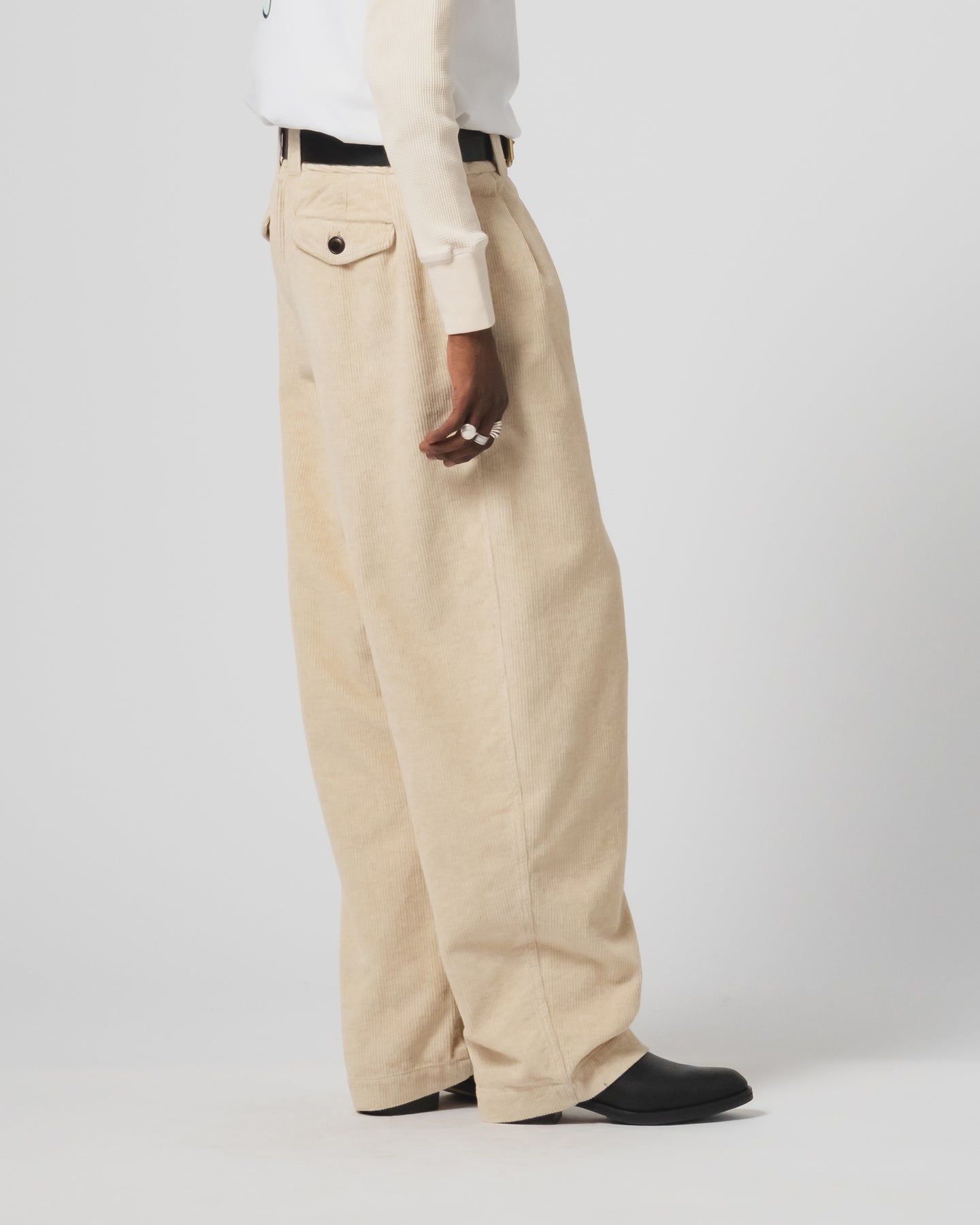 One of our bestellers, created for those that like it extra loose and extra relaxed. High waist, loose legs with a slight taper, with even more volume thanks to the double pleated front. You got that right, these are designed to chill in.