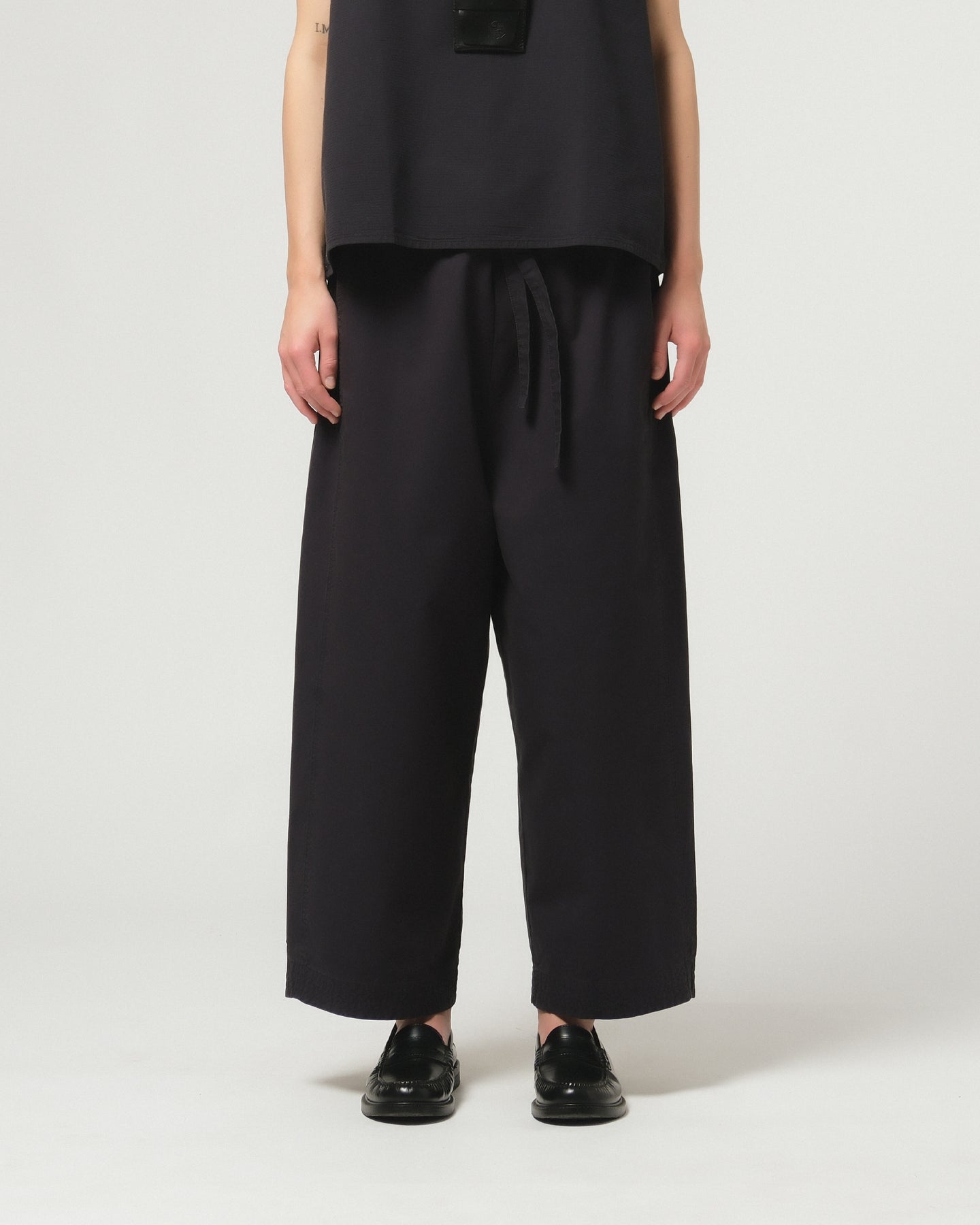 These wide, airy pants are designed for ultimate comfort and style. With a relaxed, flowing silhouette, they offer freedom of movement and a breathable fit. The pull straps at the waist allow for easy adjustments, ensuring a custom fit, while the gusset detail adds a unique, modern touch to the design. Perfect for casual outings or laid-back days.