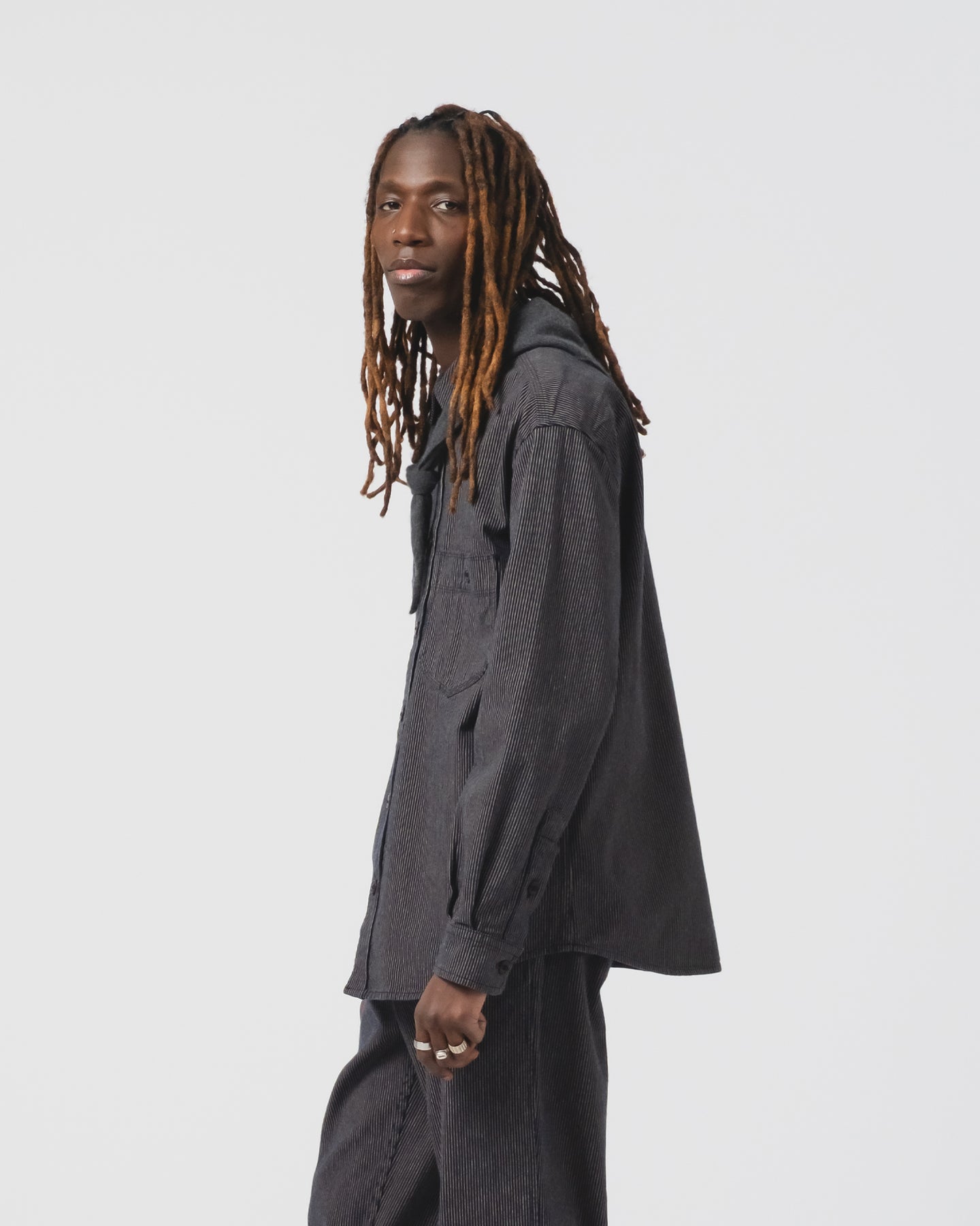 Why complicate things? We took it way back and made a shirt in that traditional worker style, with a modern oversized fit. Finished with rounded chest pockets and corozo button closure. One of our favorites.
