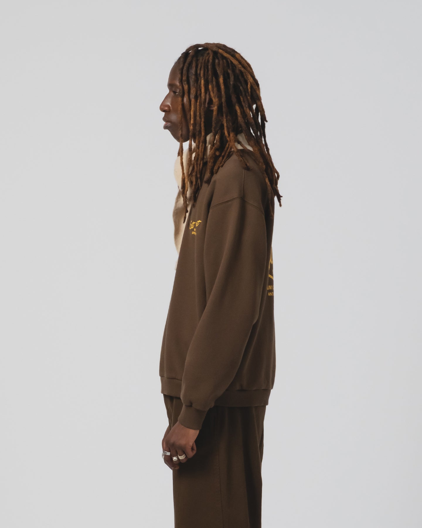 We took our Detroit sweater and made it more funky with some seasonal graphics. Constructed from premium cotton, this basic boxy design features ribbed trim cuffs, collar and hem for a snug fit.