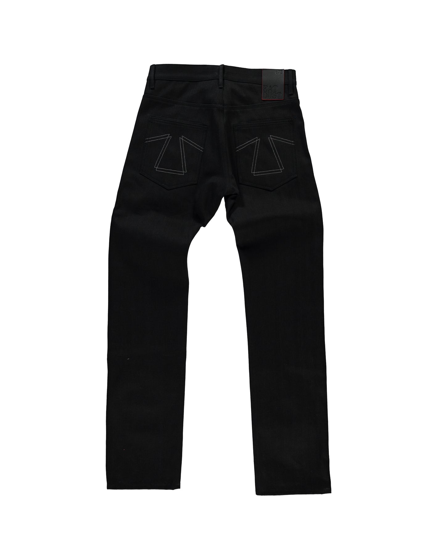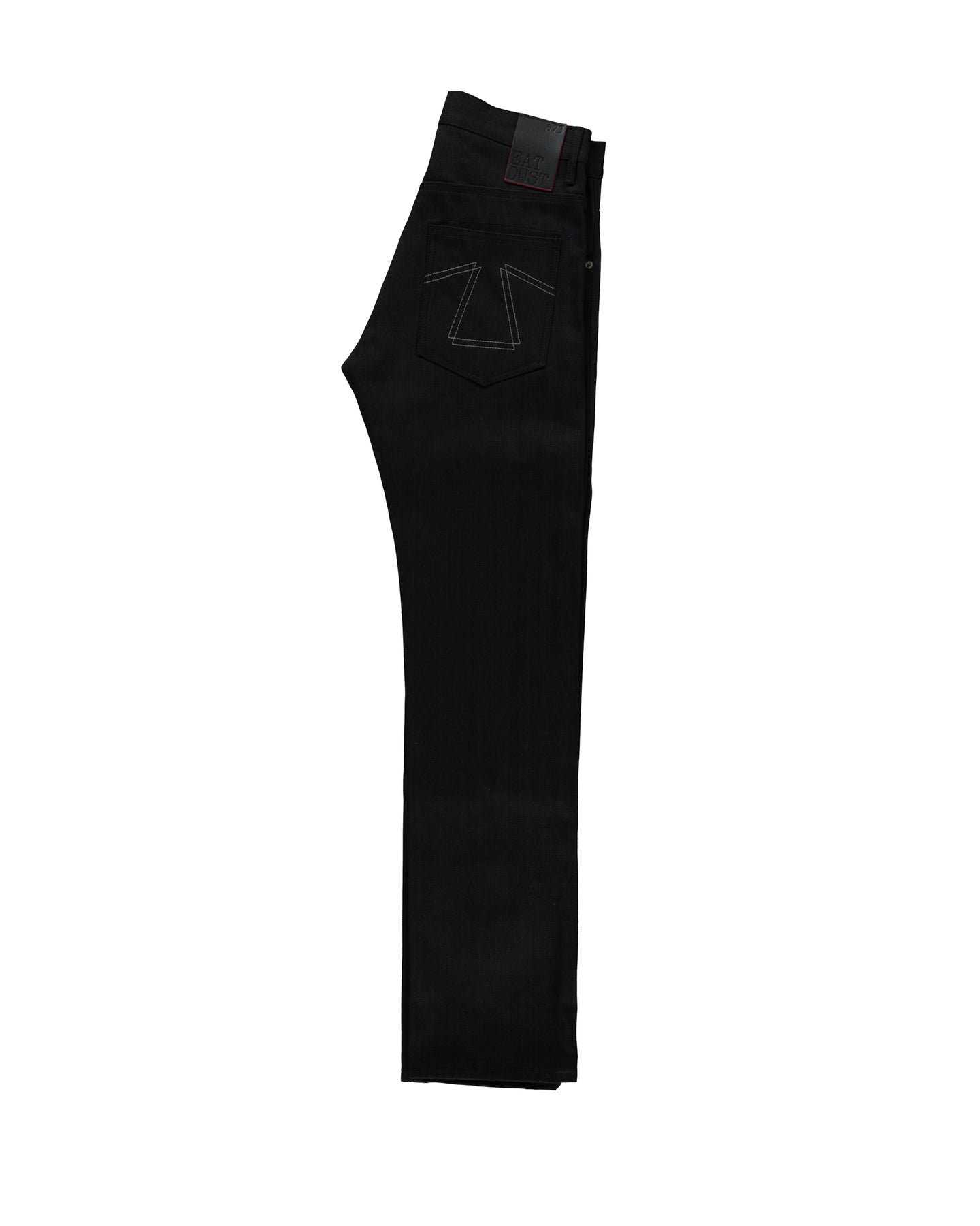 Here's our Fit 67 in blacker than black denim. These looser fitting straight jeans were made from a 14 Oz black / black red selvedge denim. Finished with 2 reinforced back pockets, signature Z-bar stitching, faded Eat Dust copper buttons & double prawn fly buttons, 2 coloured authentic rivets & leather Eat Dust label. Plus a coin pocket with signature Z-bar tonal stitching. Heavy cotton front pockets. Triple stitching on yoke and back rise for extra strength.