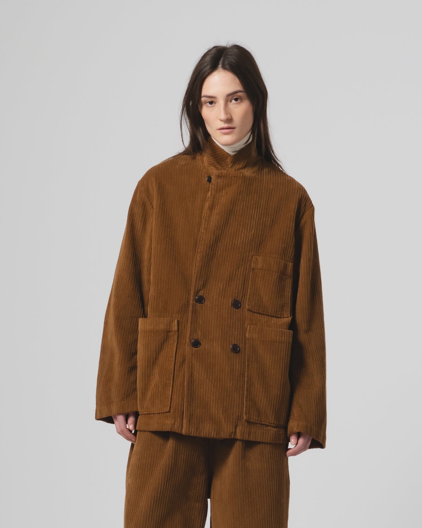 Introducing our new take on the classic double-breasted blazer, reworked with an easygoing attitude. The Maxi Blazer features a relaxed, oversized fit with soft shoulders for a more casual, unstructured look. Crafted from our seasonal Dream Cord cotton, it features a closable collar, button front closure, and oversized front pockets. Elegant yet not too serious.
