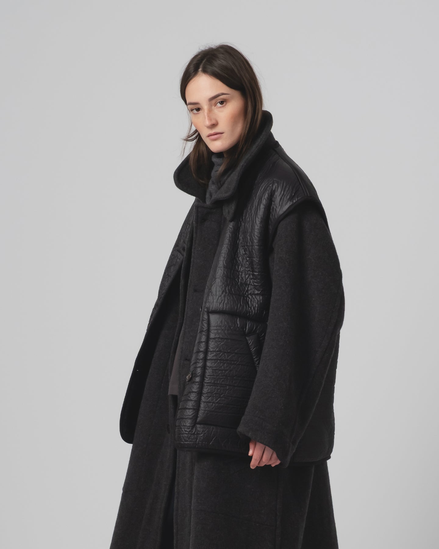 Designed to offer warmth and versatility, the Ridge Vest is a long, reversible liner-style vest. With its longline cut and oversized fit, it can be worn as an insulating layer over your jacket or styled as a standalone outer piece. Details include a three-button closure, two front pockets, and a clean, functional design built for everyday wear.