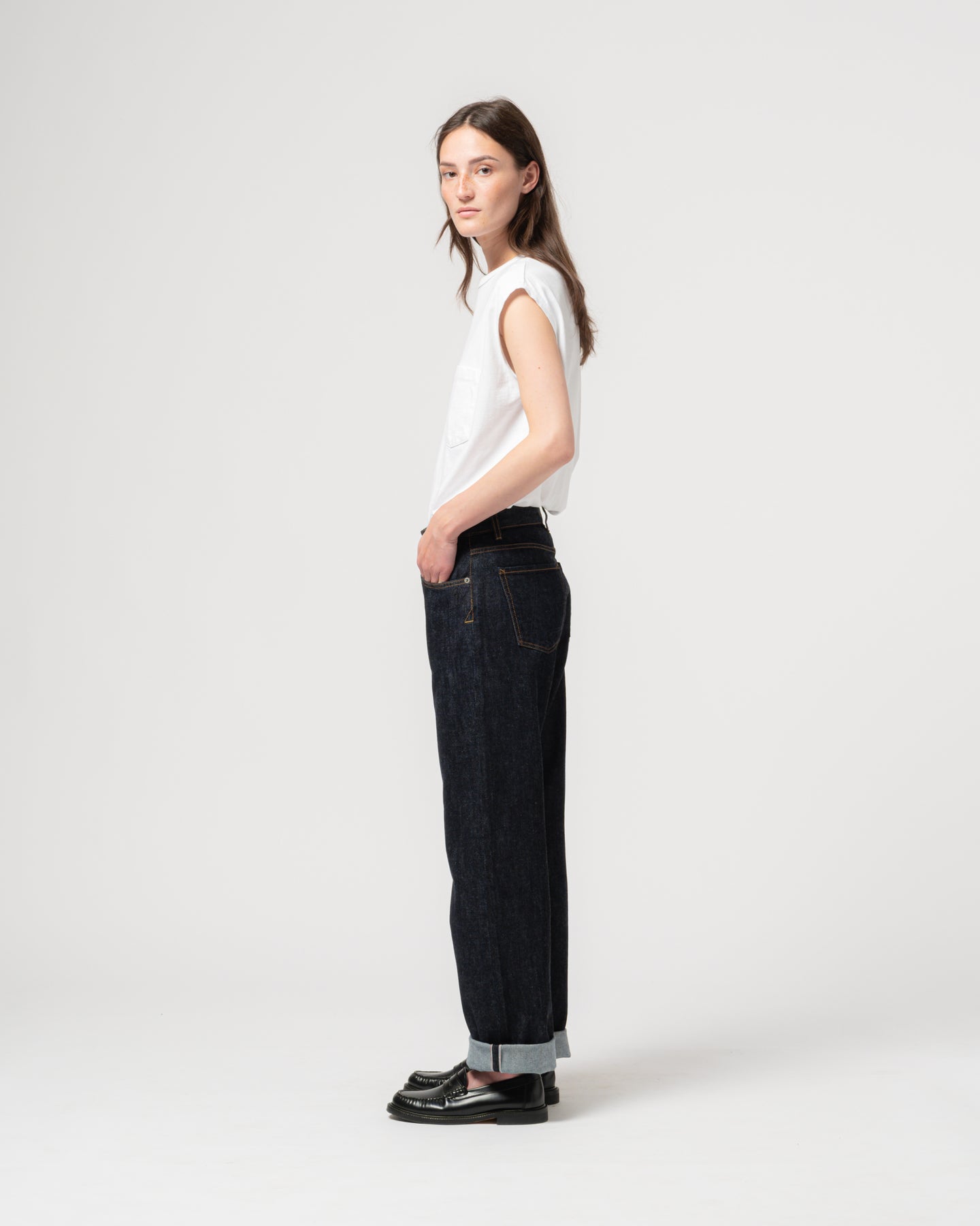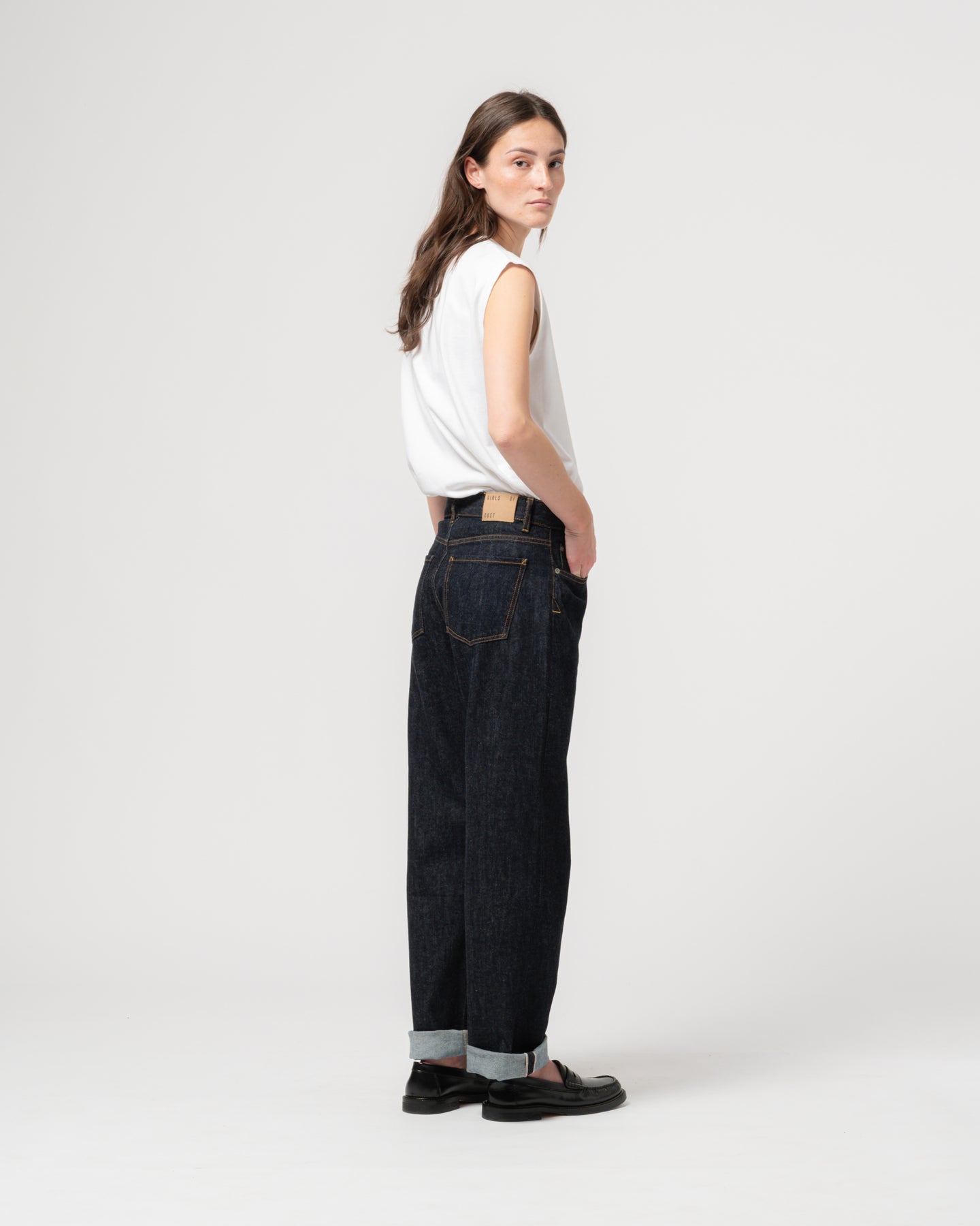 We're big, big fans of the Patty Boy, our high waist boyfriend fit. It's a classic 5 pocket denim style, with loose, tapered legs and a ton of attitude. Made from an organic 12 Oz Japanese selvedge denim.