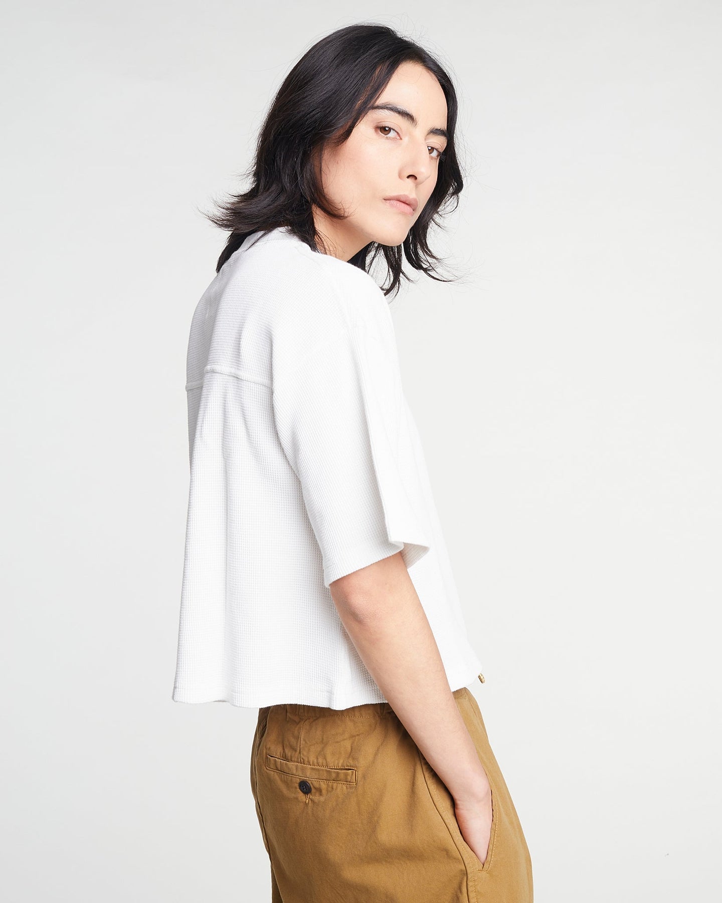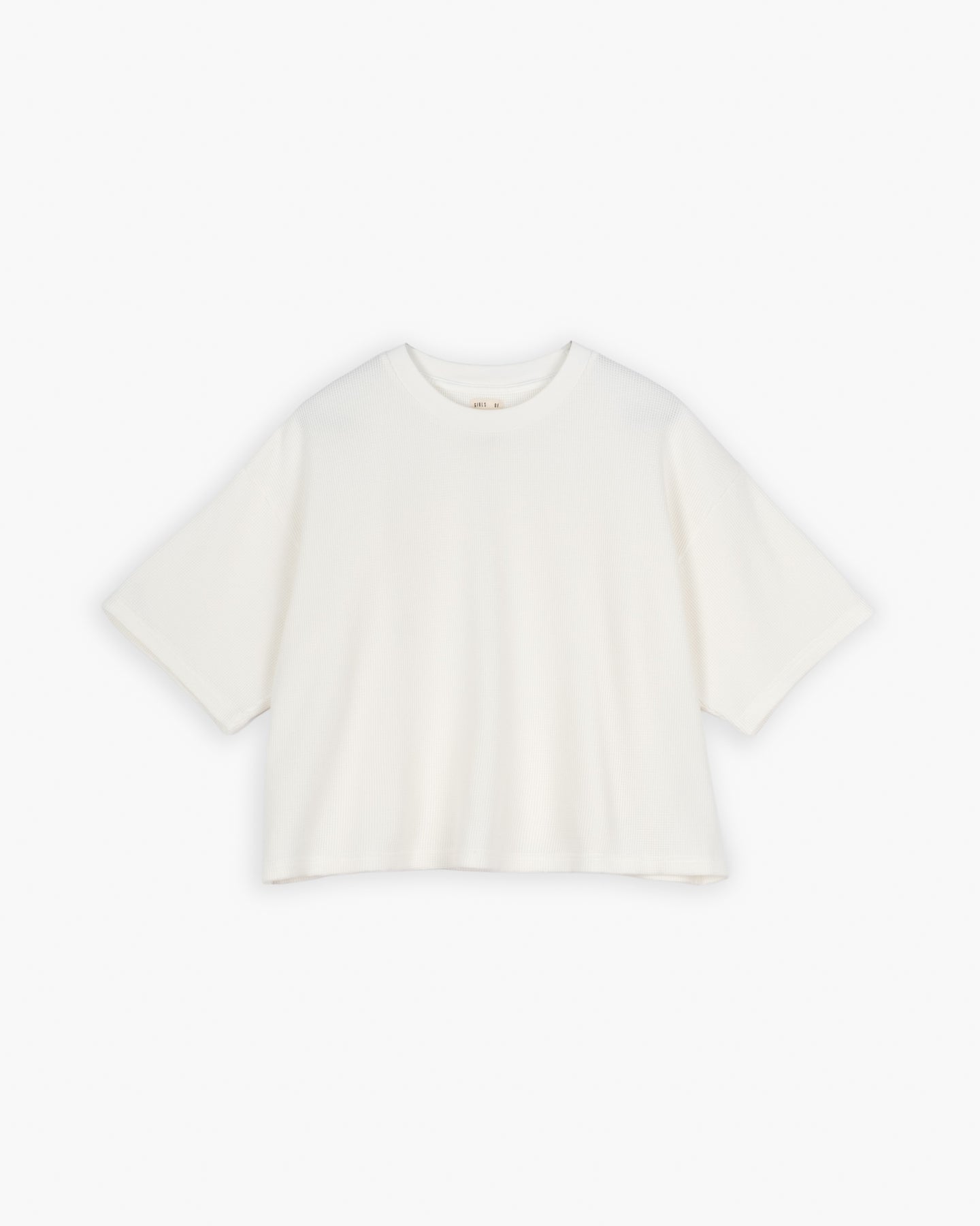 Trying to change up your t-shirt rotation? Go for this oversized, cropped AND waffled t-shirt that you can throw on over pretty much anything. Super loose fitting, with dropped shoulders and elbow length sleeves.