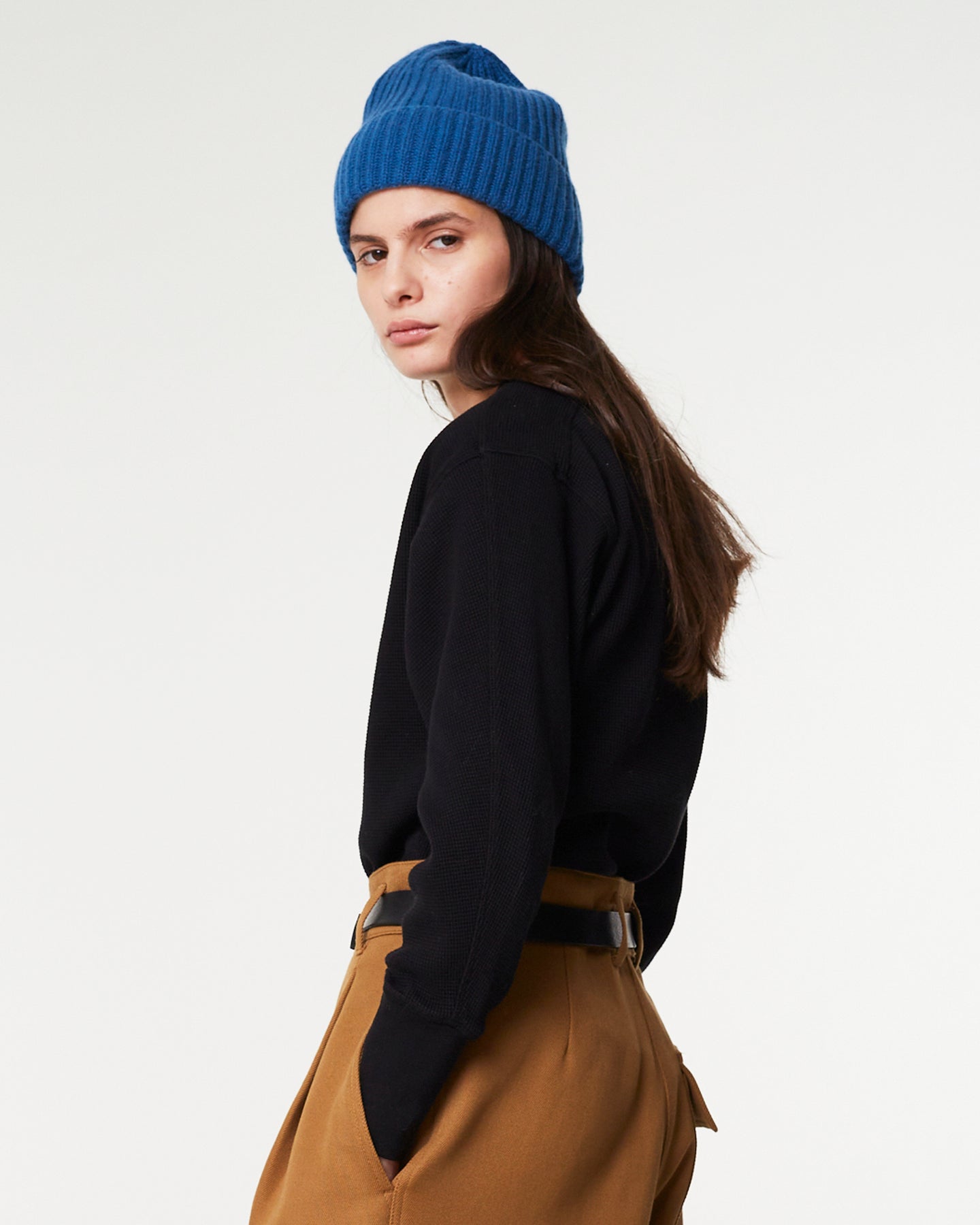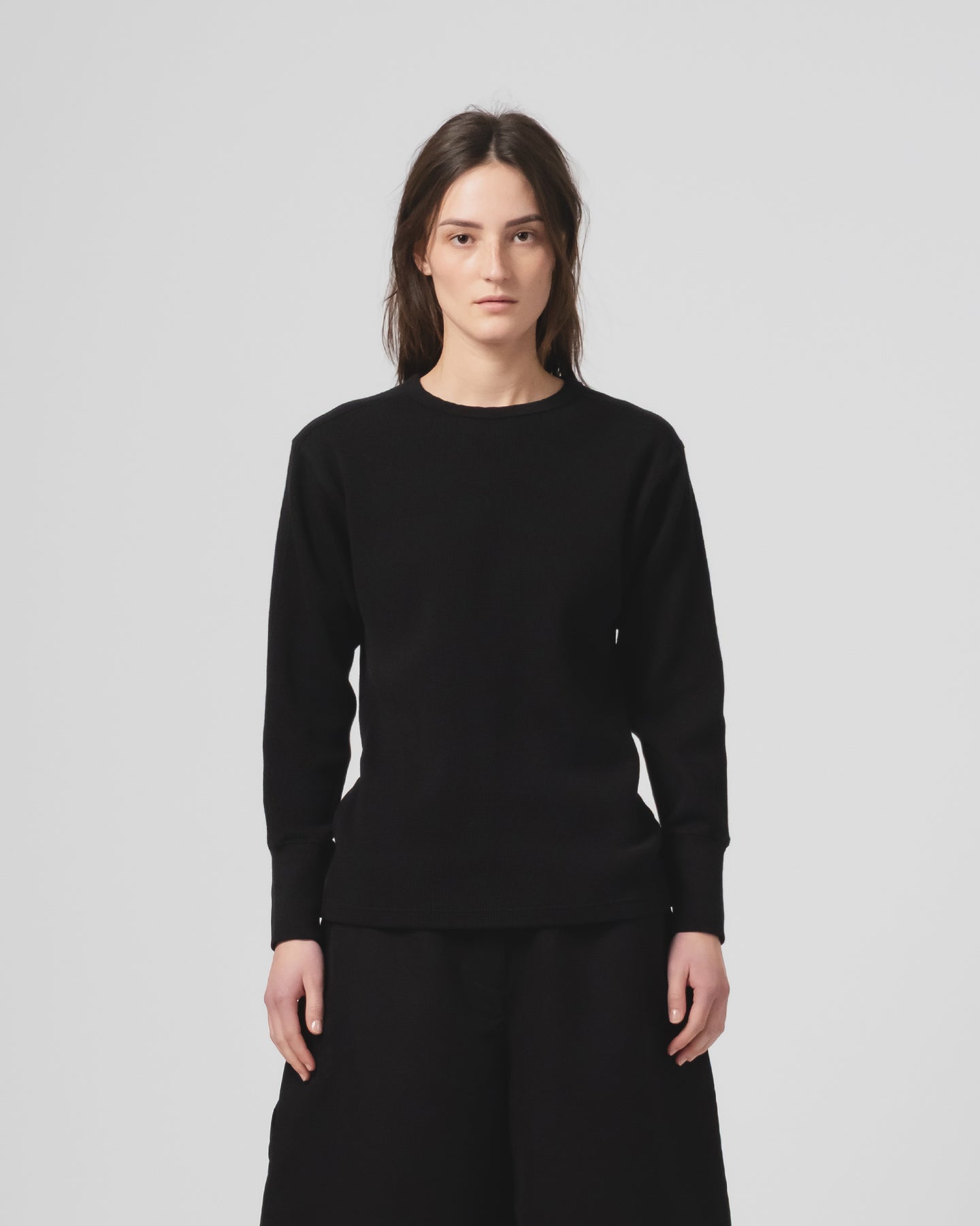 Based on the well-known thermal military t-shirts, this ribbed longsleeve is an easy piece to work into your outfit, sure to provide extra warmth when you layer it, or you can just wear it on its own and still look great. Made in Portugal from an organic cotton blend with baby waffle structure.