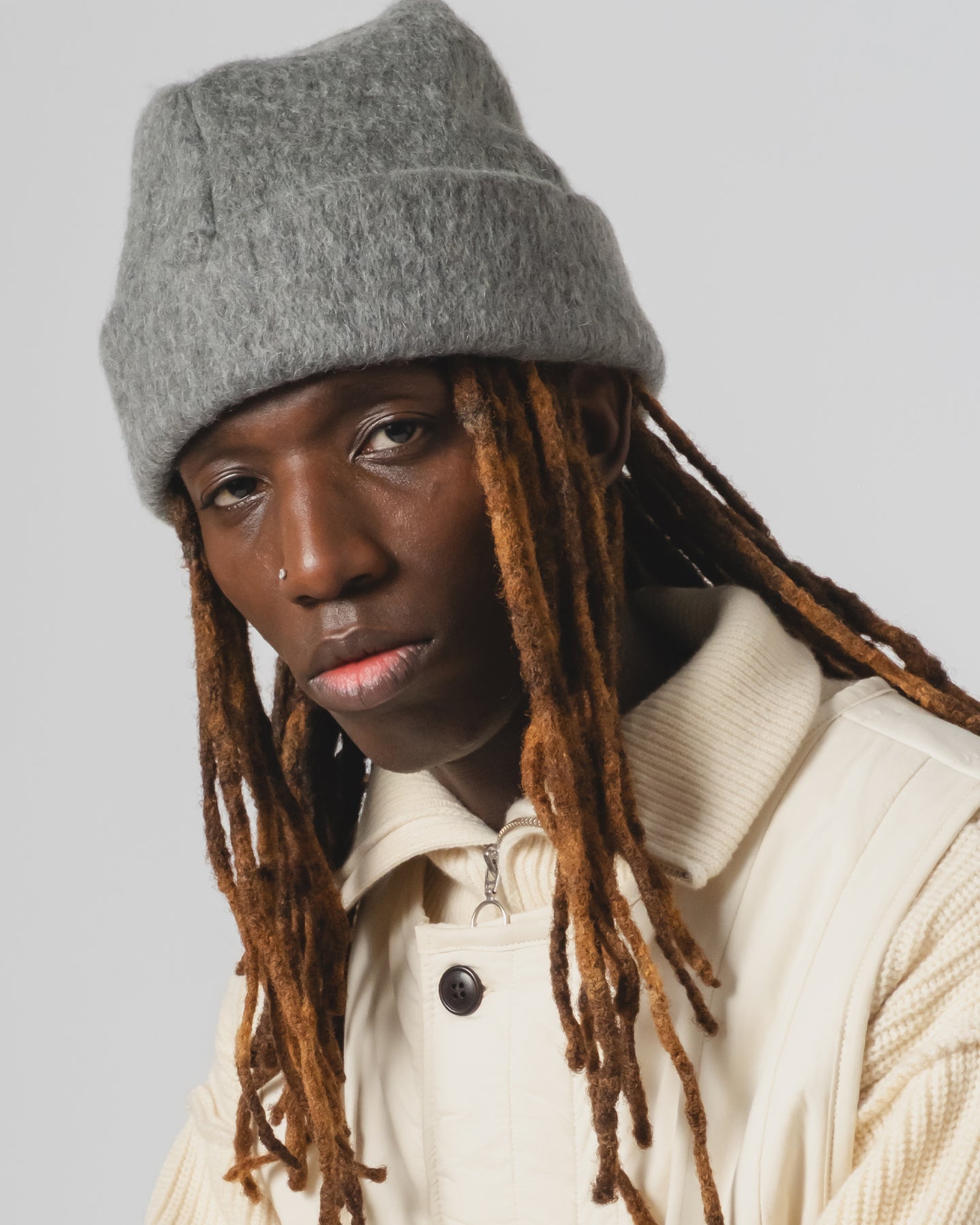 This thick, relaxed beanie is crafted from a mohair wool blend, making it a cozy and stylish choice for anyone. Its unisex design means it’s perfect for sharing, and it’s sure to stand out as a bold accessory throughout the winter season.